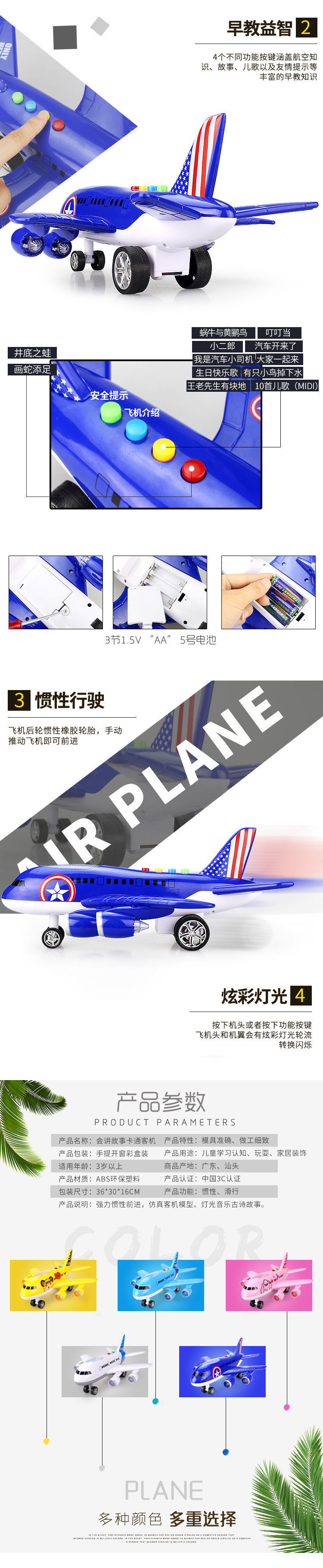 어린이 날 선물 3-9 세 전기 생일 유치원 아기 관성 장난감 항공기 여객기 데스크탑 장식품