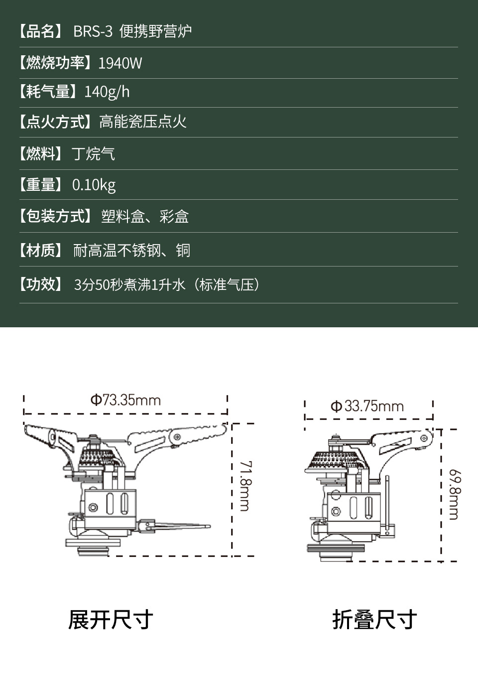 Brother Jiedeng BRS-3 휴대용 캠핑 스토브 야외 미니 올인원 접이식 스토브 초경량 휴대용 소형 가스 스토브
