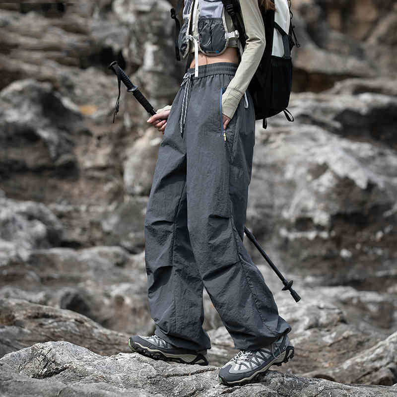 큰 브랜드 충전 바지 여성용 여름 얇은 선 스크린 와이드 레그 빠른 건조 바지 방풍 방수 야외 낙하산 병 등산 스포츠 바지스토어 가기