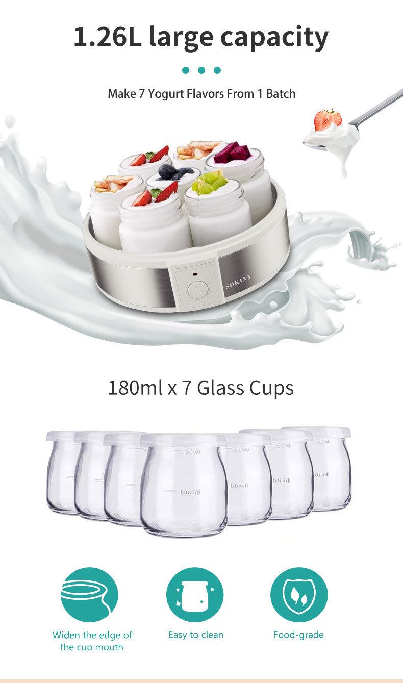 국경 간 유럽 전기 요구르트 기계 자동 발효 DIY 밀크 쉐이크 잼 아이스크림 요구르트 푸딩 7 컵 1200
