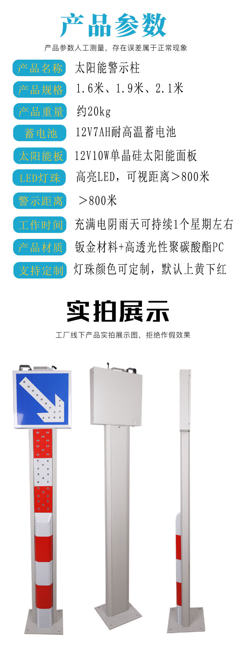 • 2.1m 단면 이중 표시 경고 컬럼(표시 내용을 맞춤 설정할 수 있음)