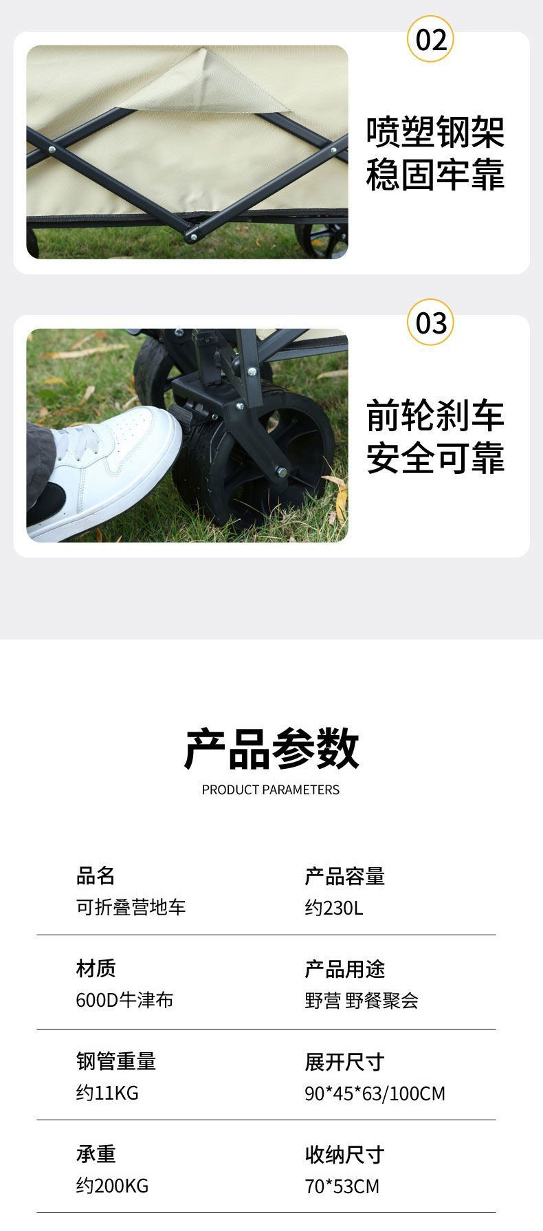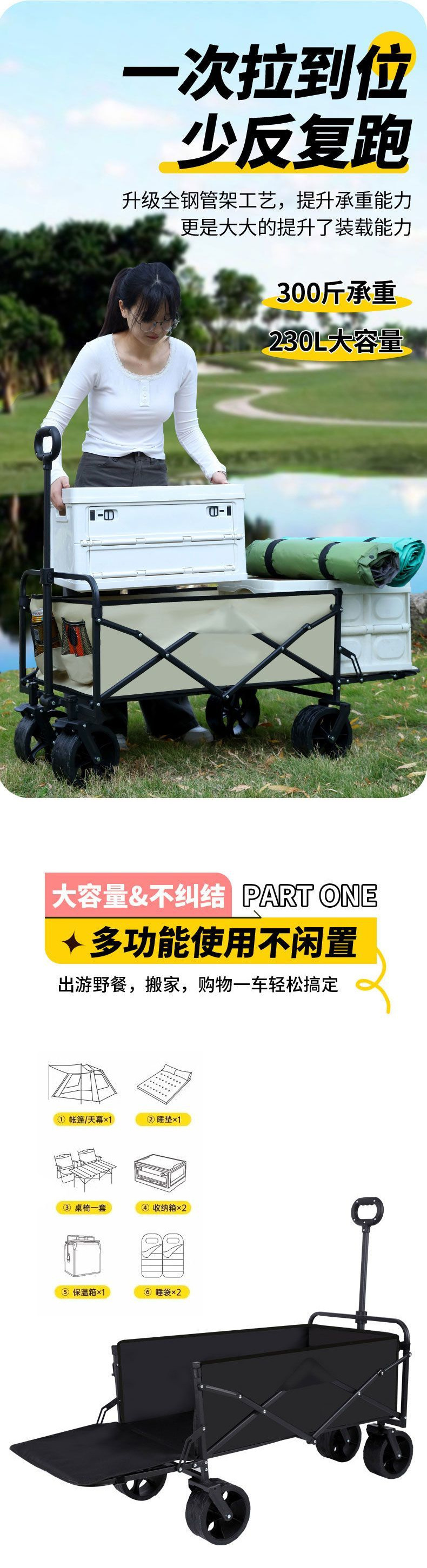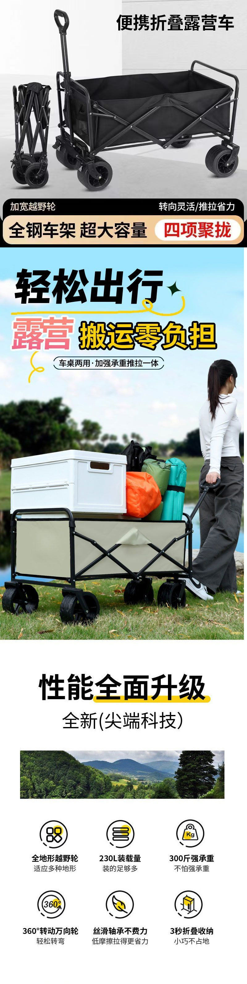 새로운 야외 캠프 카 편리한 캠핑 트롤리 접이식 피크닉 자동차 쇼핑 카트 걷는 아기 아티팩트 스톨스토어 가기