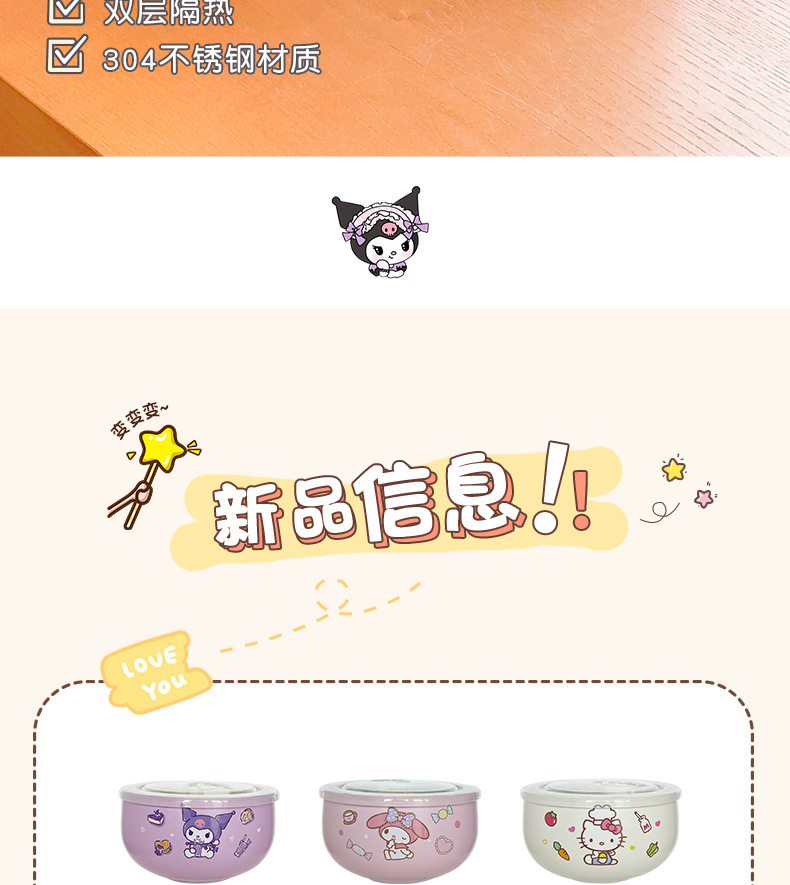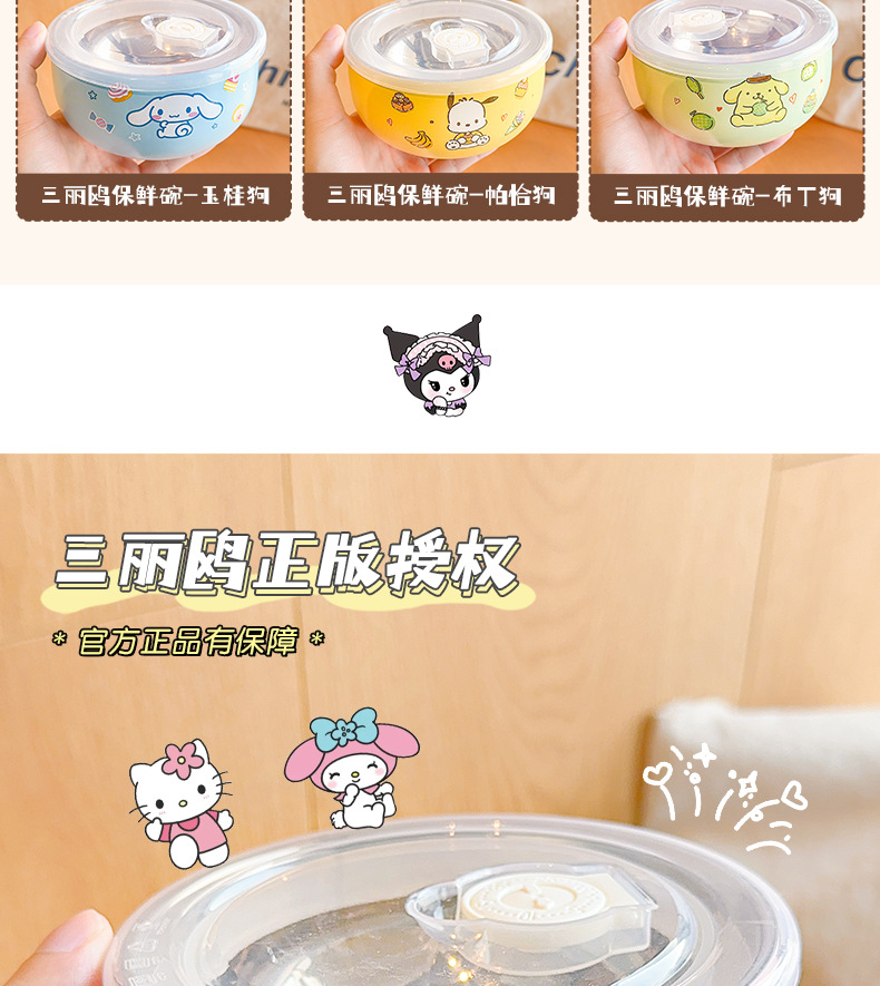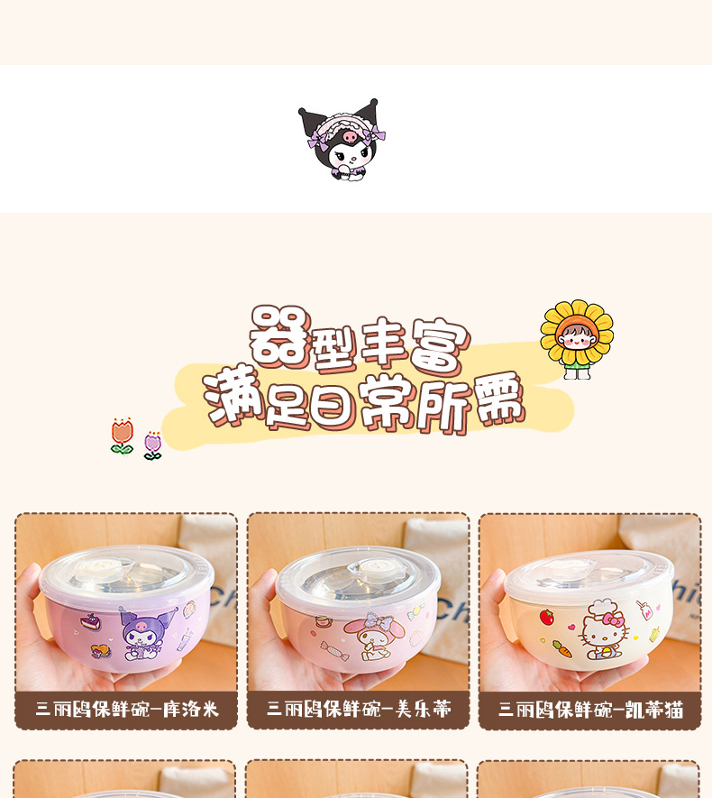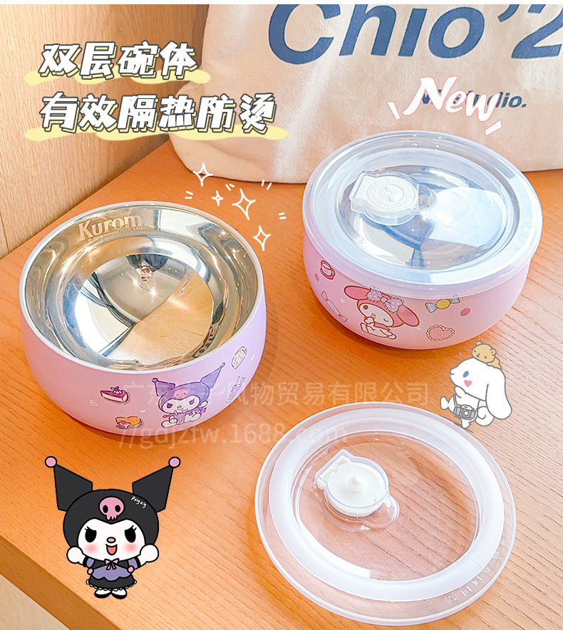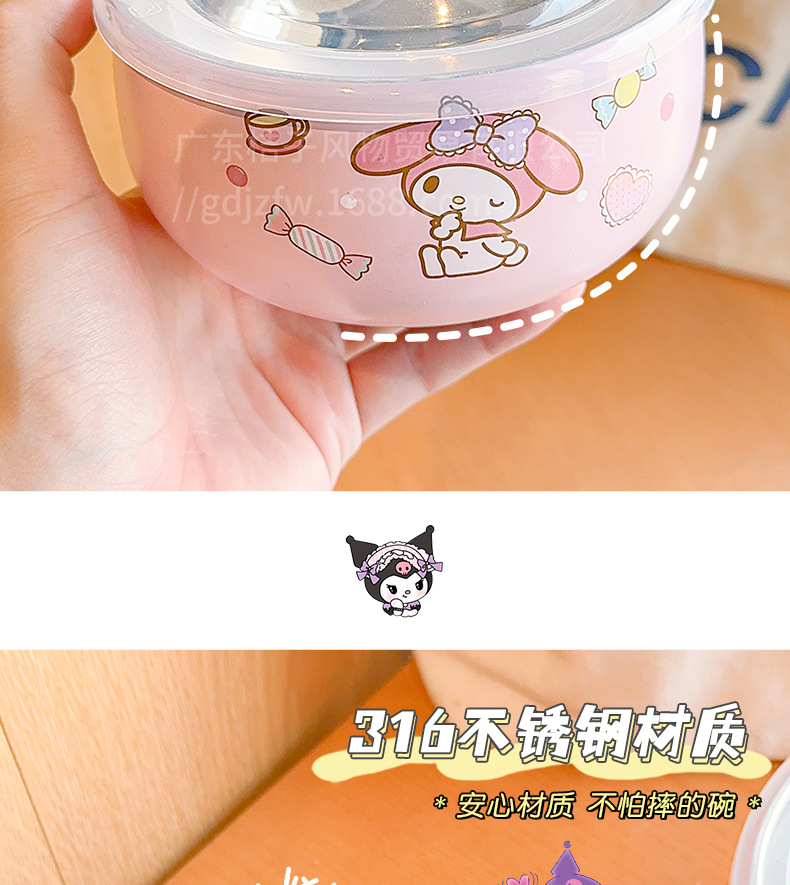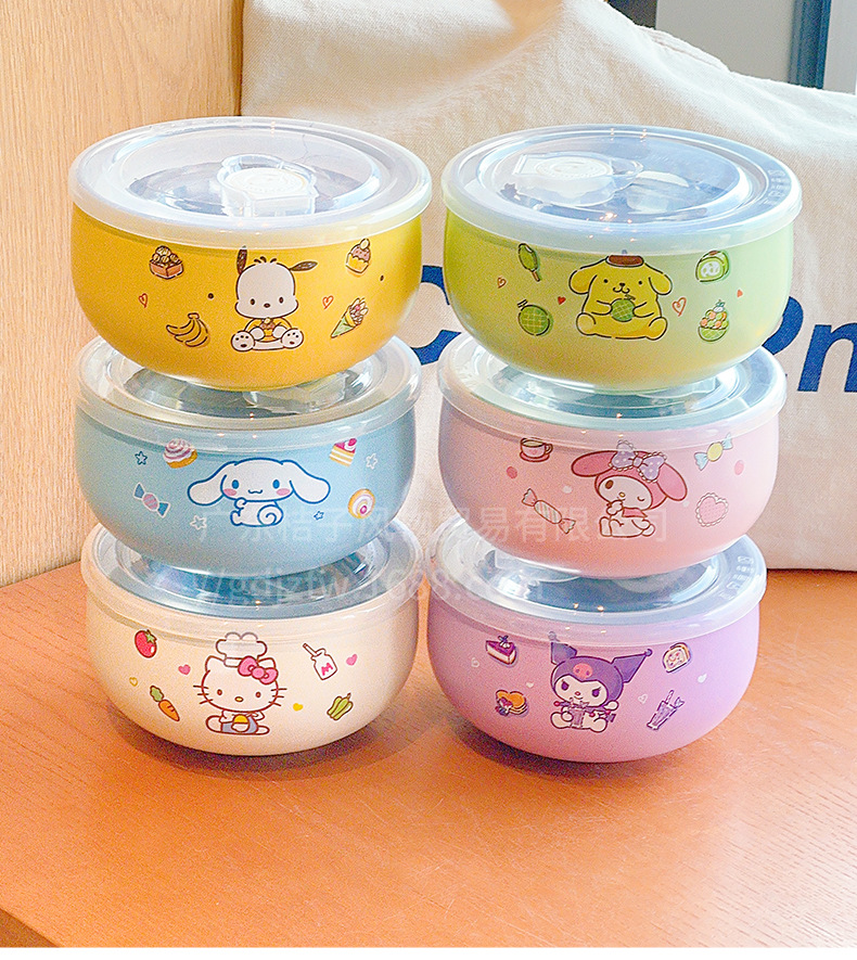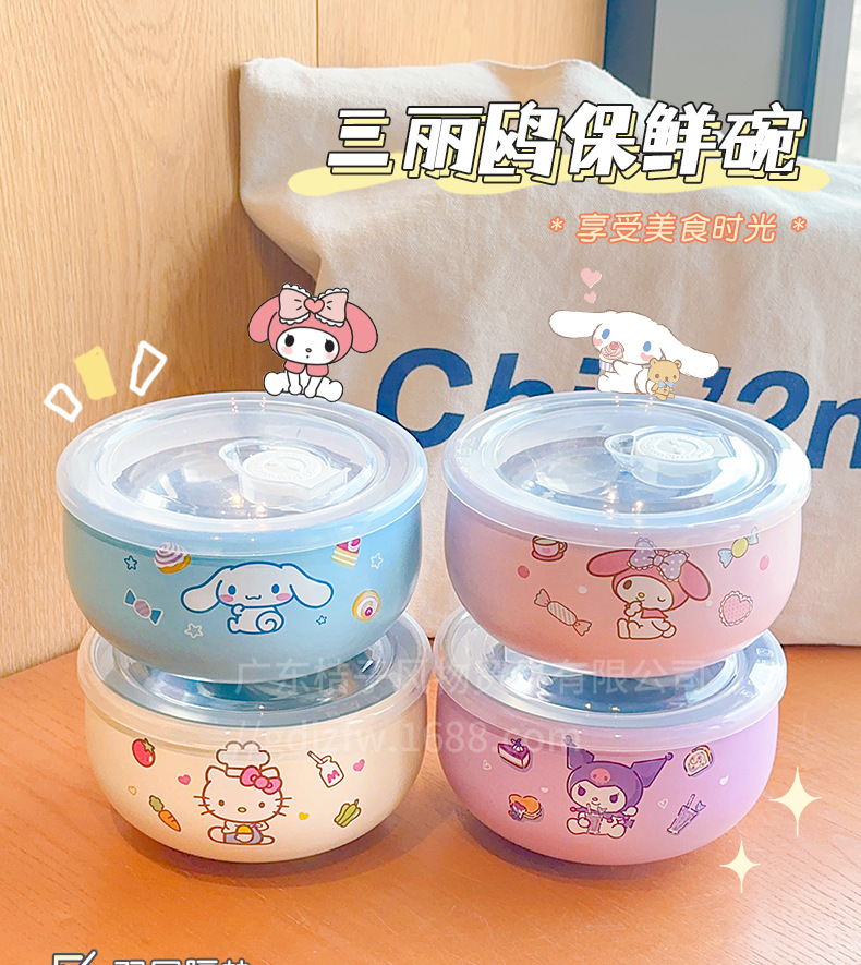 산리오 밥그릇, 어린이그릇, 신선보관그릇, 뚜껑있는 도시락그릇, 기숙사용 스테인리스 특수그릇, 학생식사그릇
