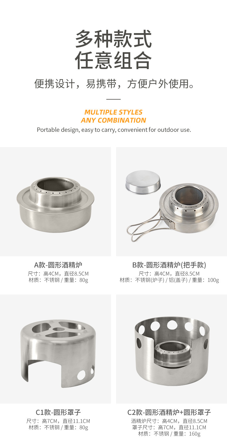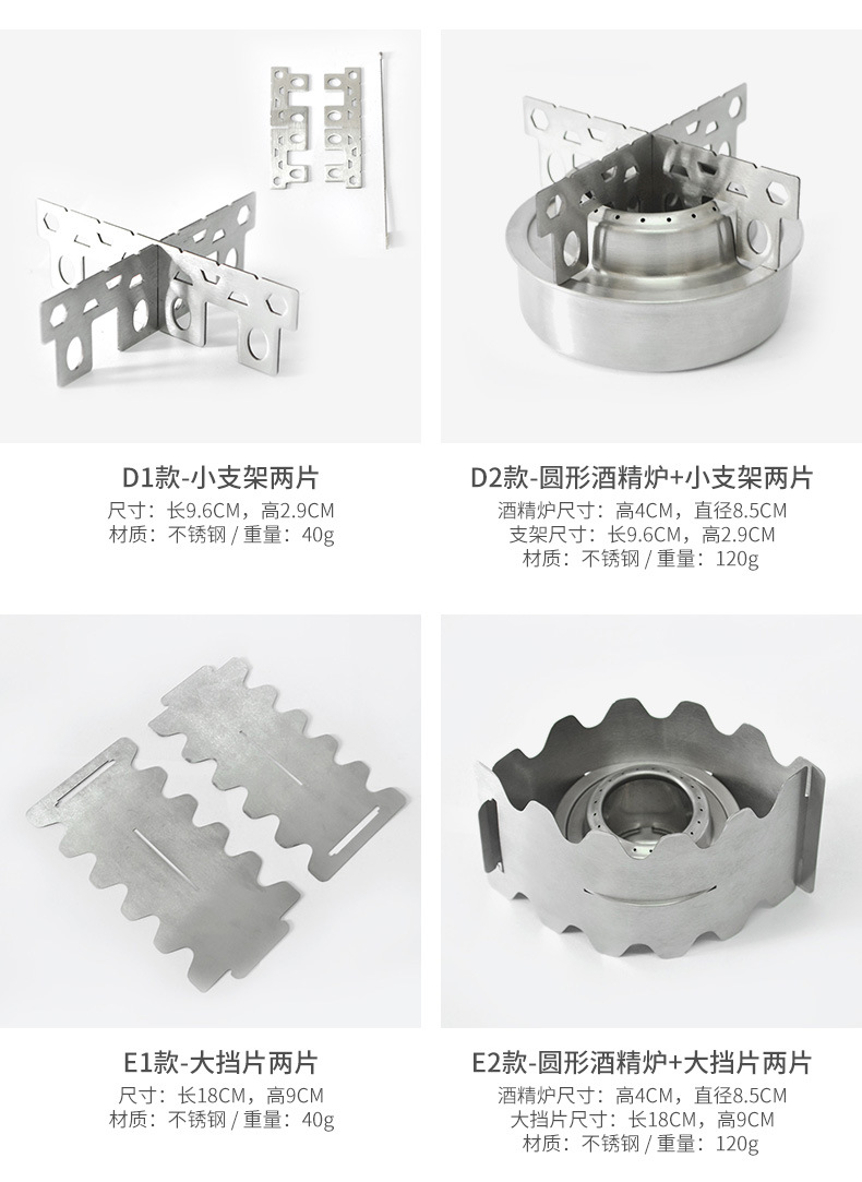 야외 다양한 알코올 스토브, 휴대용 스테인레스 스틸 알코올 스토브, 피크닉 및 캠핑 소형 스토브, 윈드 쉴드 스탠드 스토브스토어 가기