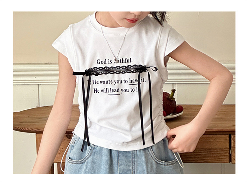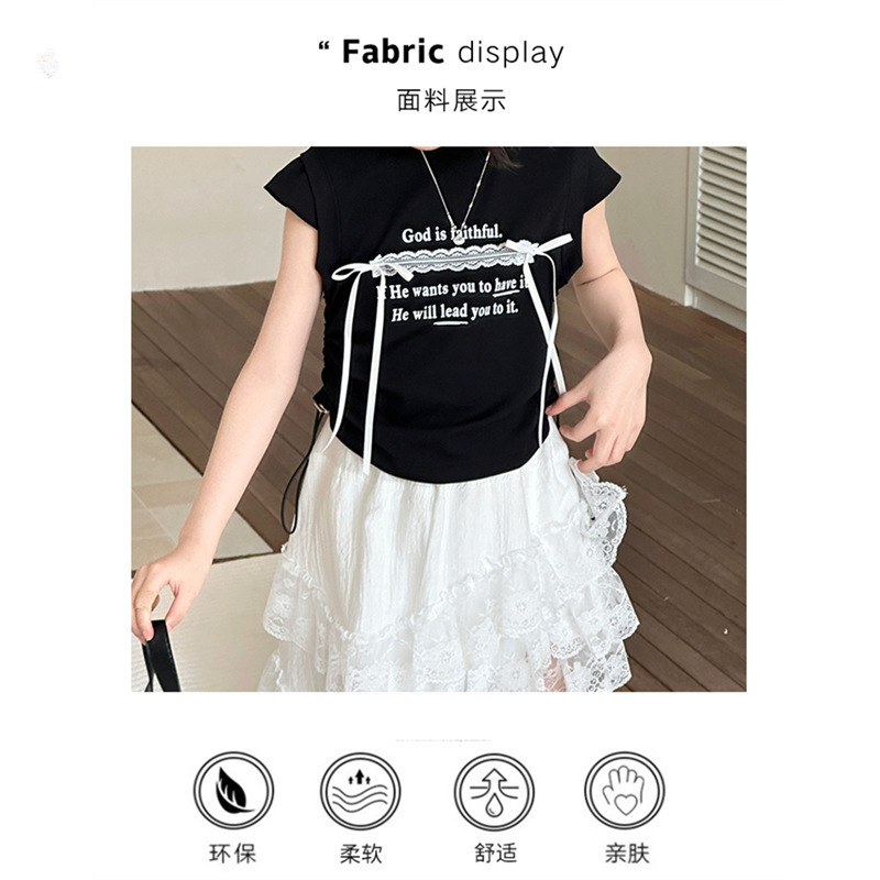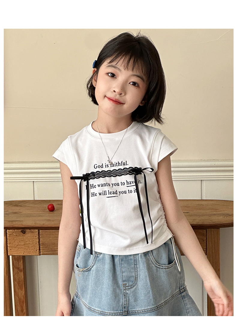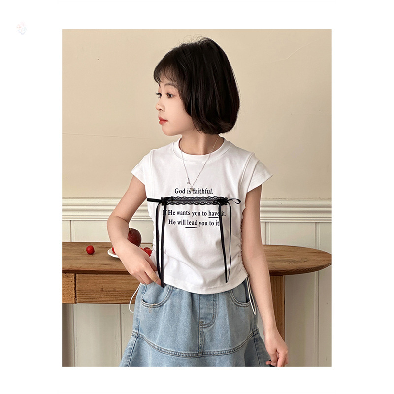불규칙한 티셔츠 큰 아이들 여름 세트 활 짧은 소매 메쉬 새로운 여자 레이스 케이크 스커트 2025스토어 가기