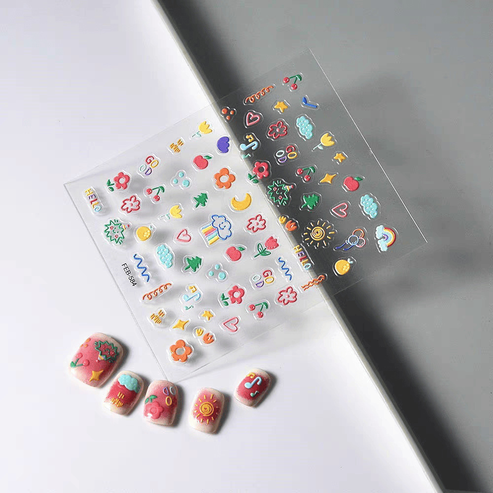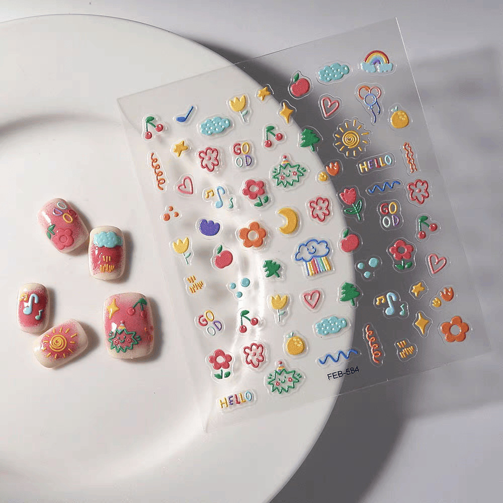 귀여운 네일 아트 스티커 작은 빨간 책 새로운 도파민 같은 스타일 어린이 재미 3 차원 만화 네일 꽃 구름스토어 가기
