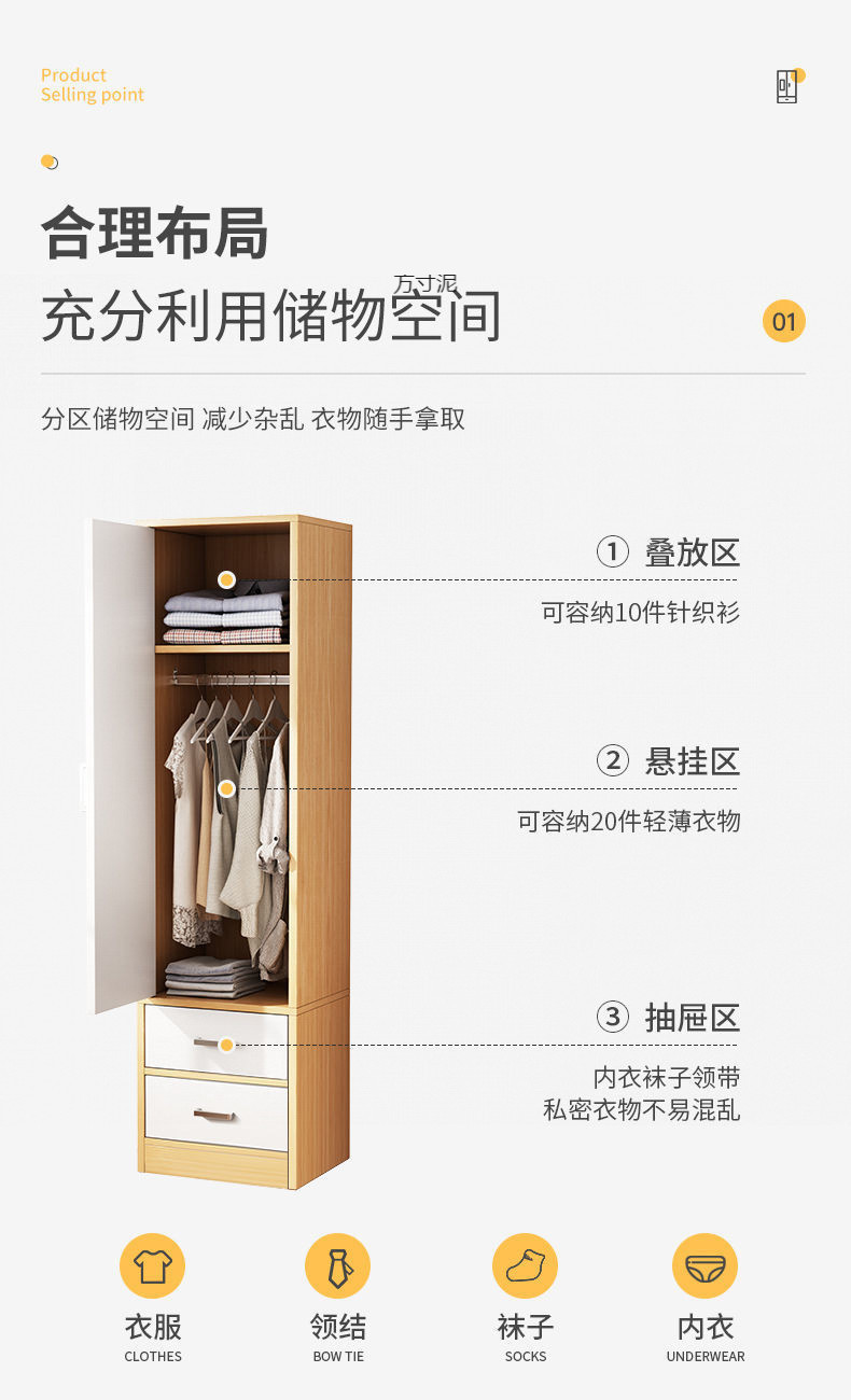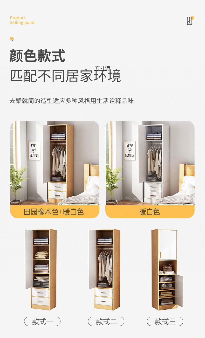간단한 현대 작은 단일 옷장 홈 침실 임대 방을 위한 단 하나 문 좁은 옷장 간단한 내각 저장 내각