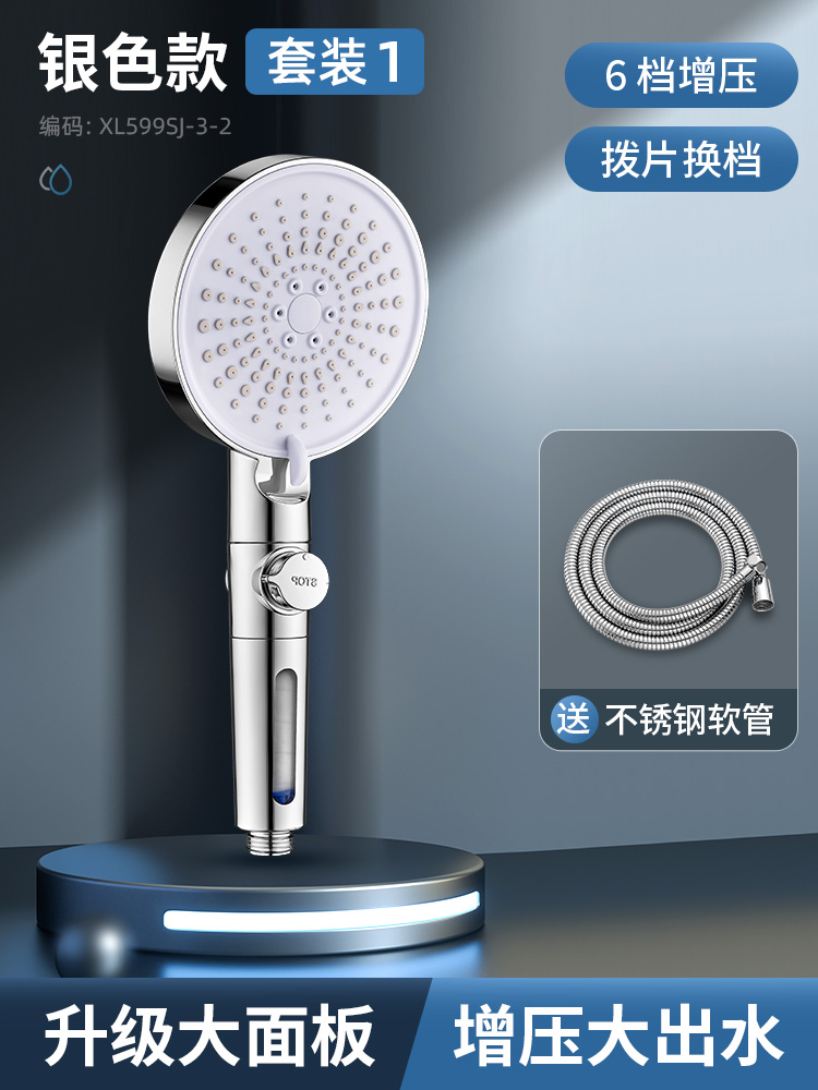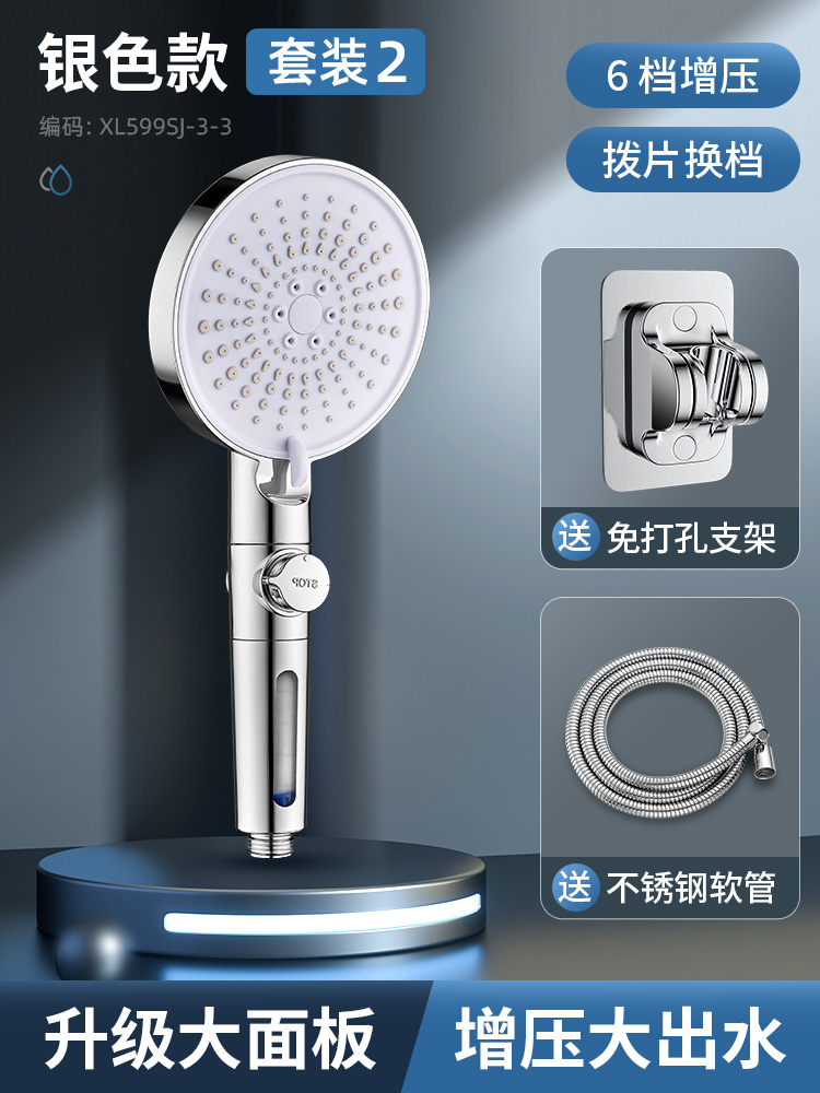 • 플래티넘 실버 업그레이드 스위치 6단(필터링 및 피부미용) [호스 1.5m개 무료] + 브라켓(욕실 휴대용 풀세트)