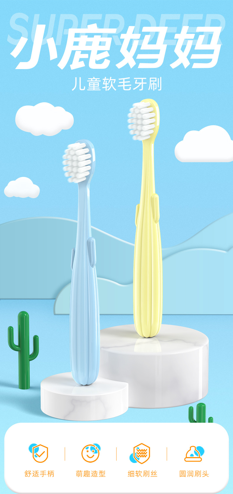 어린이를 위한 사슴 엄마 칫솔, 부드러운 모와 밀도가 높은 칫솔, 아기 만화 귀여운 모양, 편안한 그립, 공장 직접 판매