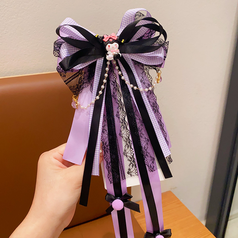 Kulomi 리본 헤어 액세서리 어린이 헤어핀 활 소녀의 이마 체인 공주 술 머리핀 어린 소녀의 머리 장식