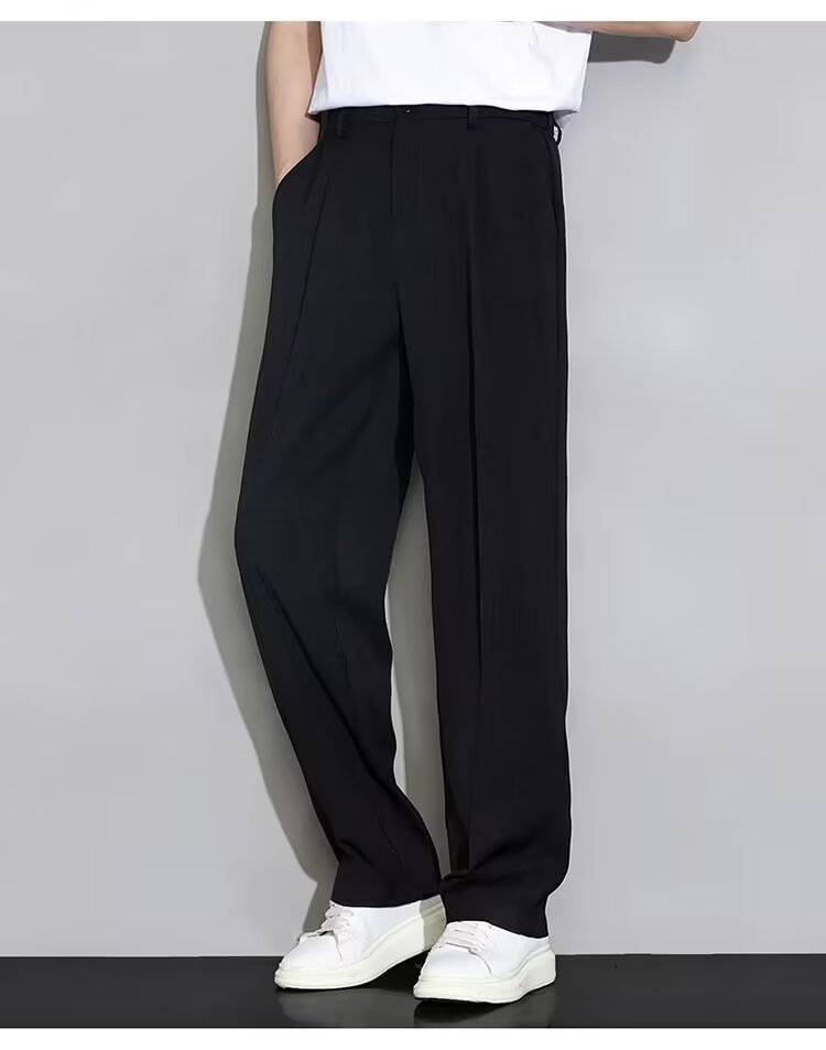 여름 얇은 양복 얼음 실크 캐주얼 바지 남성 바지 느슨한 스트레이트 바지 드레이프 양복 바지