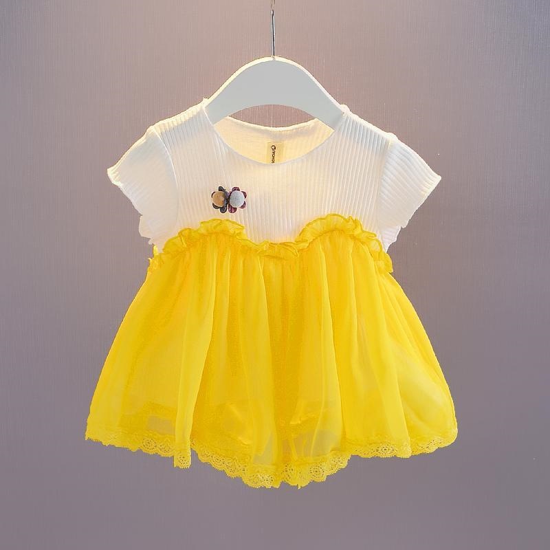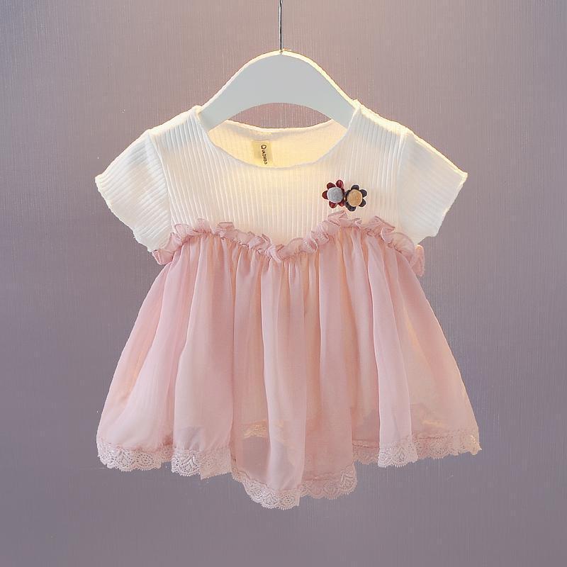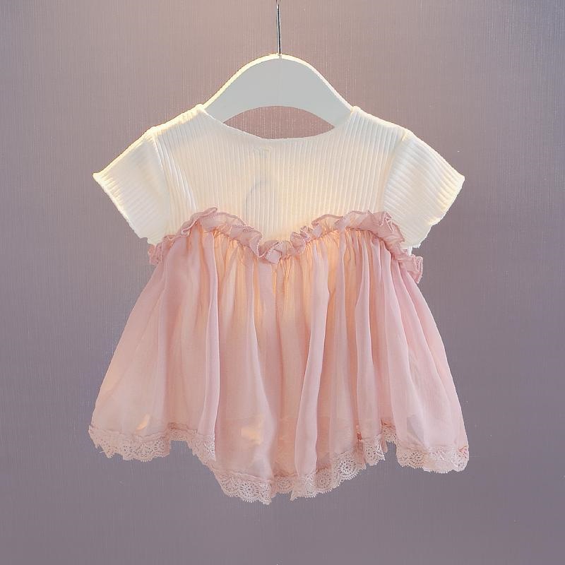 (재고 있음) 아기 소녀 여름 반팔 인형 셔츠 01-2-3 세 소녀 쉬폰 셔츠 아기 반팔 옷 유행