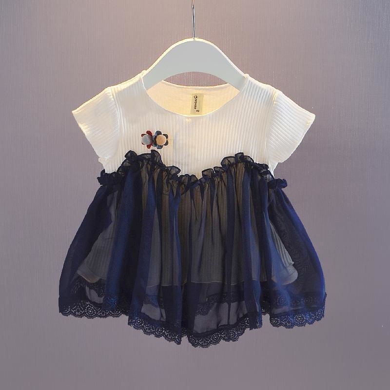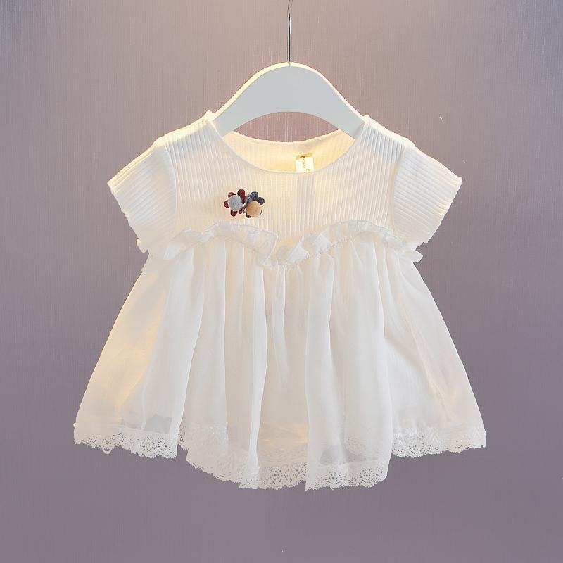 (재고 있음) 아기 소녀 여름 반팔 인형 셔츠 01-2-3 세 소녀 쉬폰 셔츠 아기 반팔 옷 유행스토어 가기