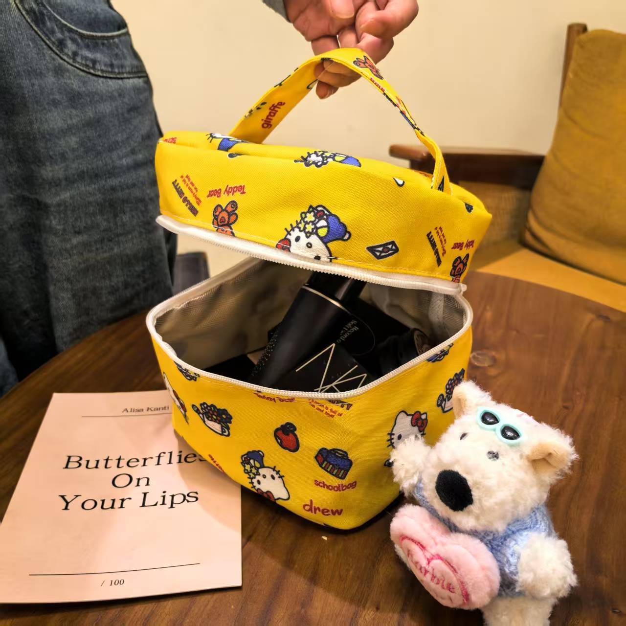 Kt 고양이 새로운 화장품 가방 폭발성 휴대용 화장품 가방 대용량 저장 귀여운 여행 세척 절묘한 가방스토어 가기