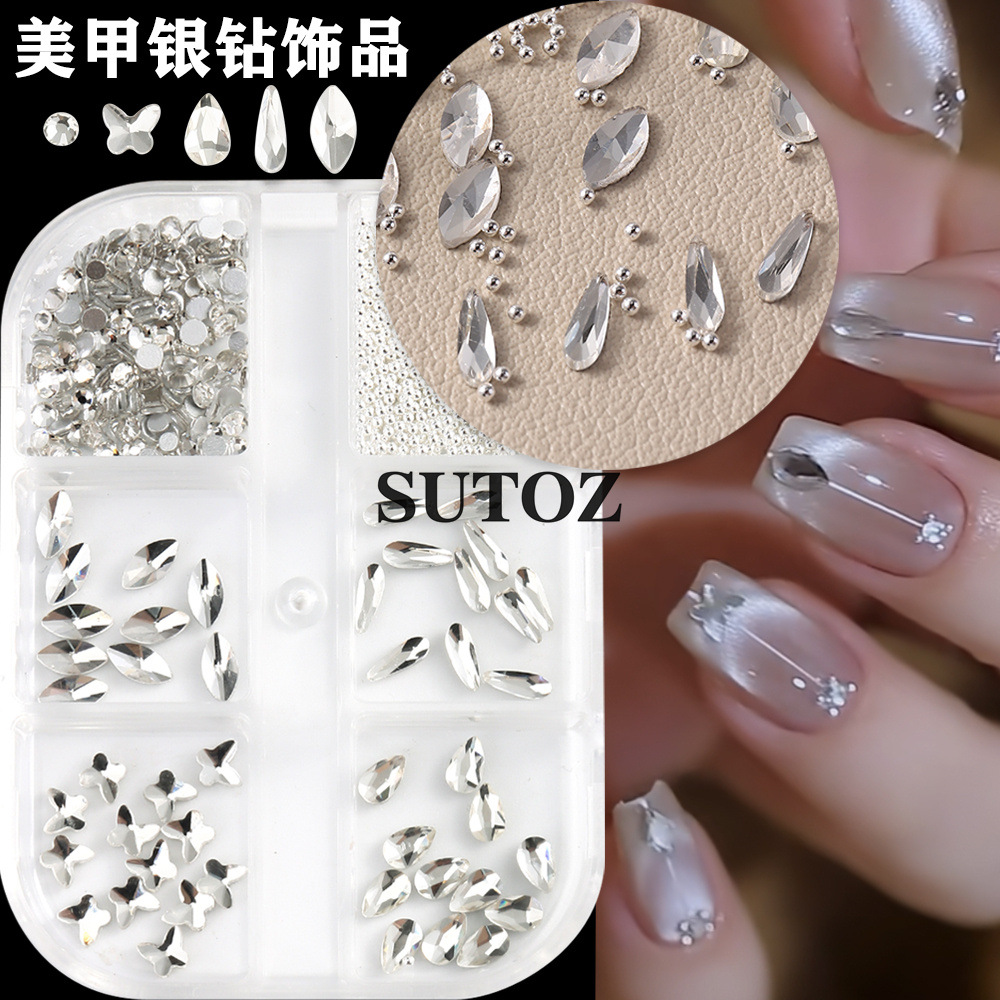 국경 간 새로운 네일 아트 액세서리 여름 얼음 투명 크리스탈 특수 모양의 다이아몬드 스틸 비드 네일 입체 장식 액세서리스토어 가기