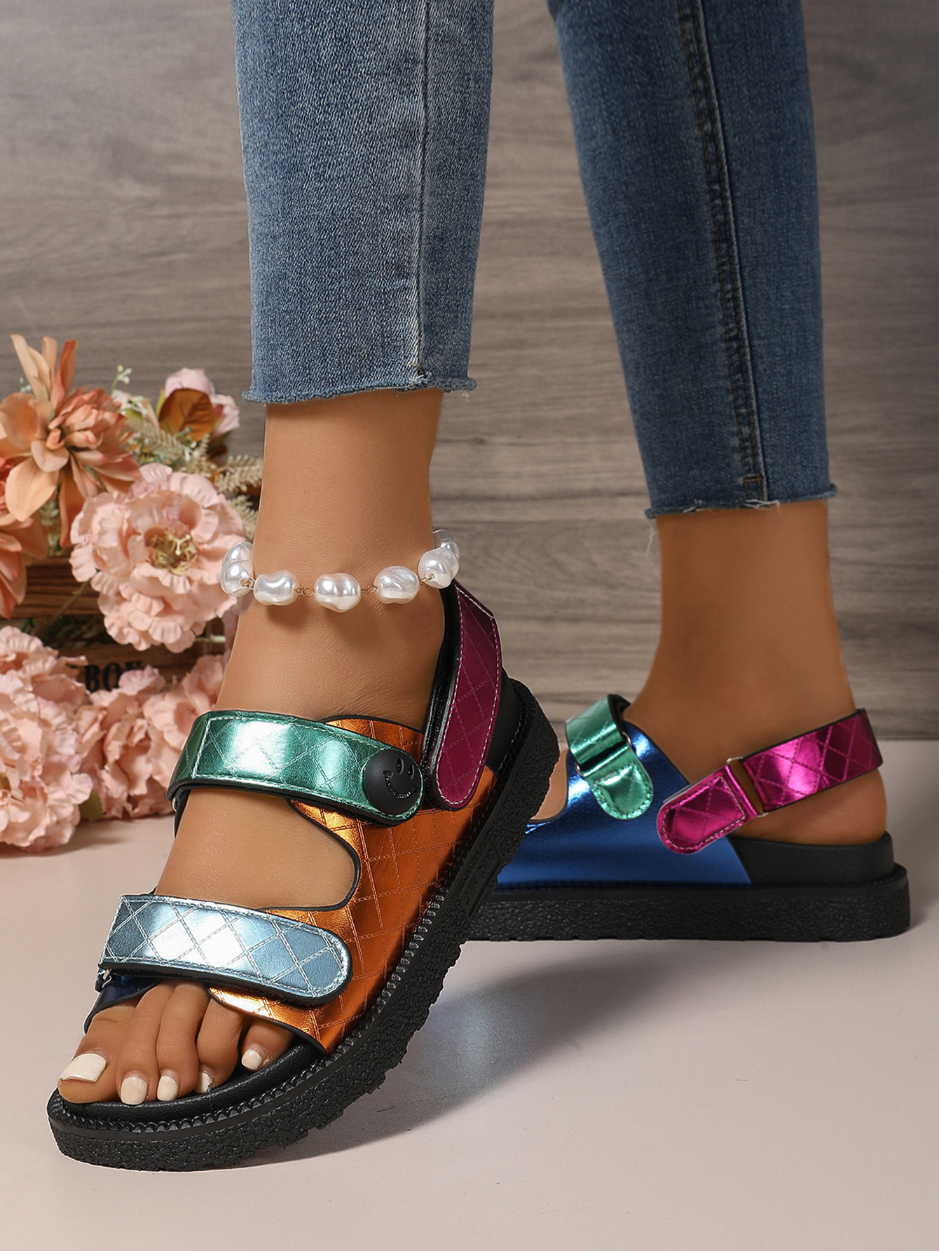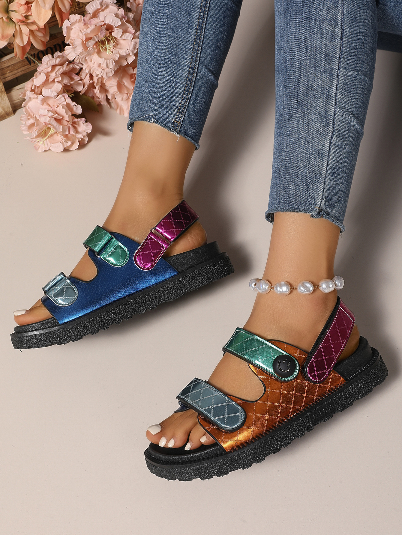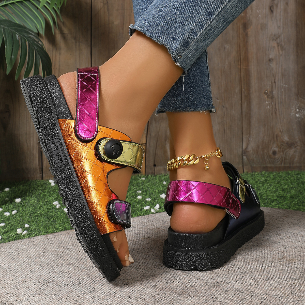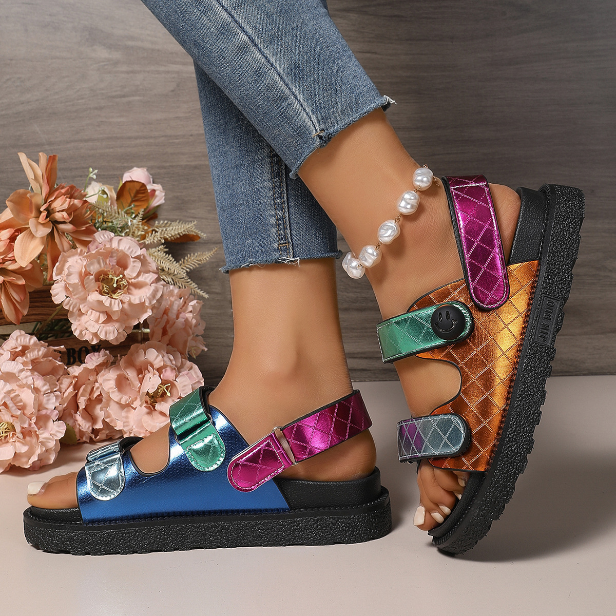 2025 대외 무역 새로운 플랫 컬러 로즈 비치 샌들 대형 여성 신발 다채로운 빗자루 모양의 비치 신발