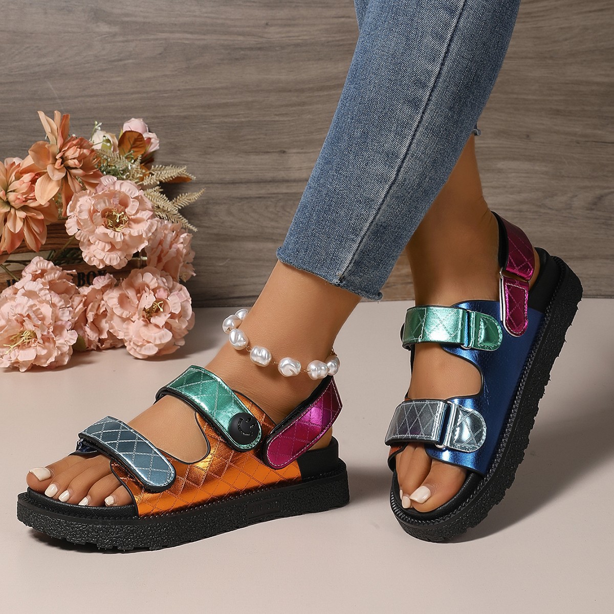 2025 대외 무역 새로운 플랫 컬러 로즈 비치 샌들 대형 여성 신발 다채로운 빗자루 모양의 비치 신발스토어 가기