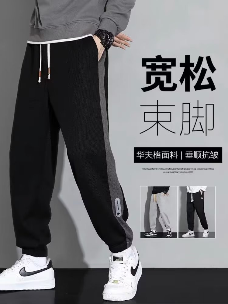 남성용 스웨트팬츠, 봄, 가을 레깅스 스웨트팬츠, 루즈하고 활용도가 높은 캐주얼 바지, 홍콩 스타일 모델 디자인, 틈새 트렌디 브랜드스토어 가기