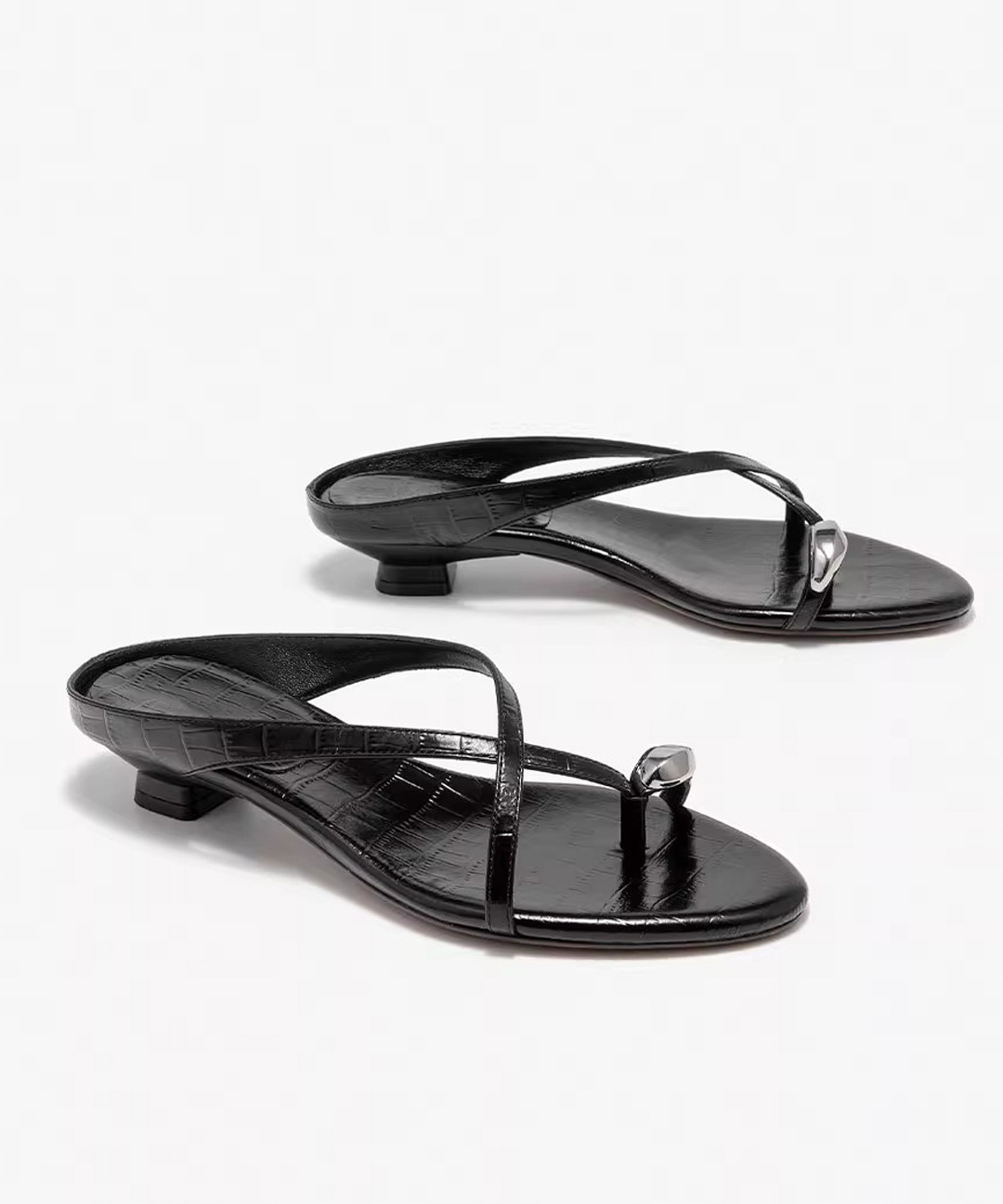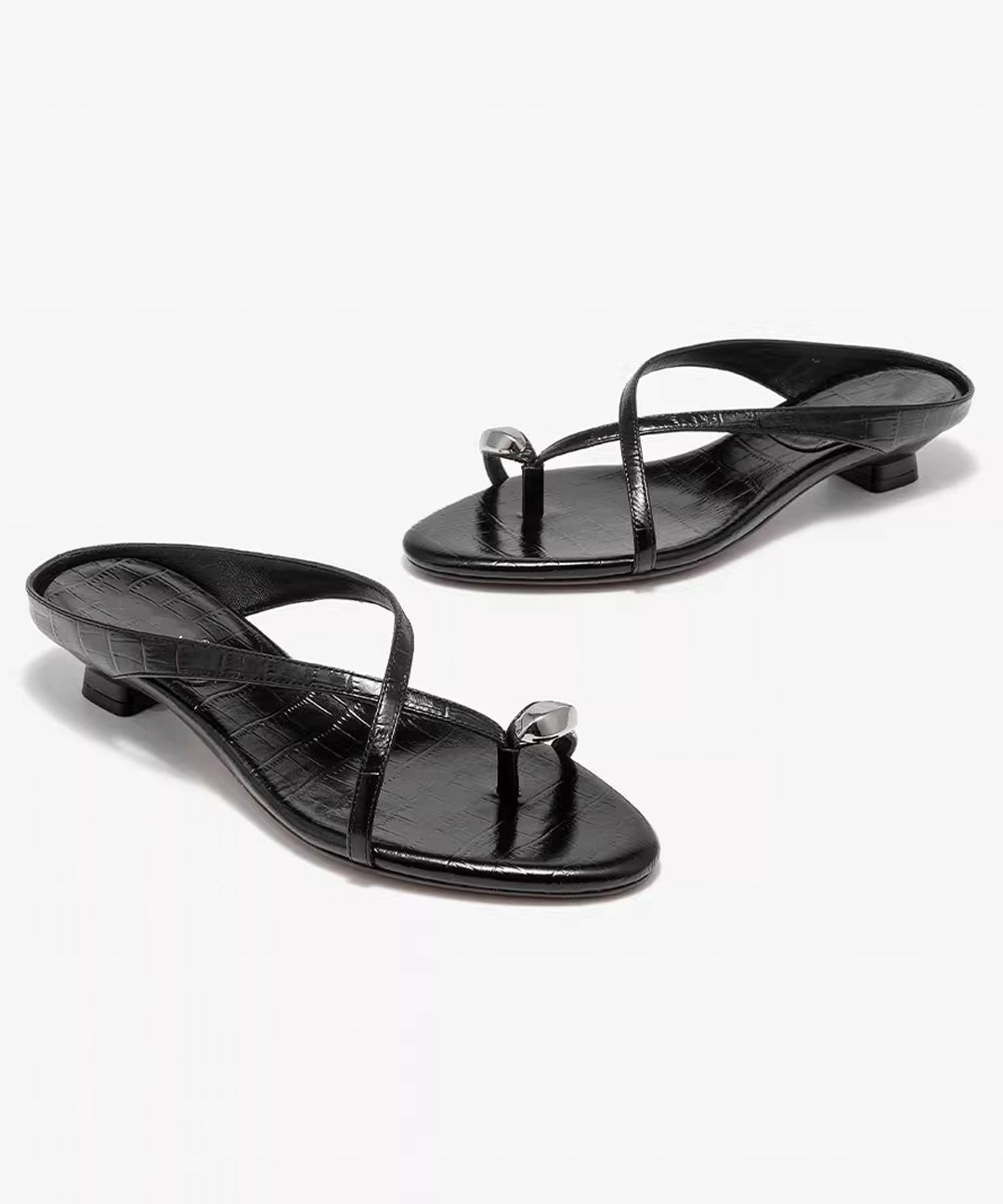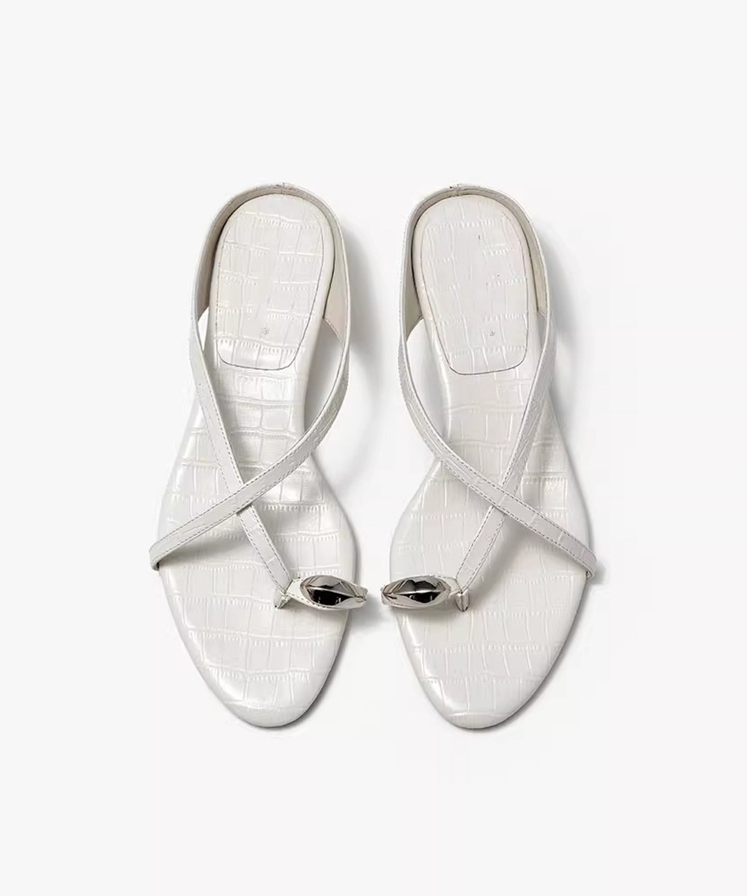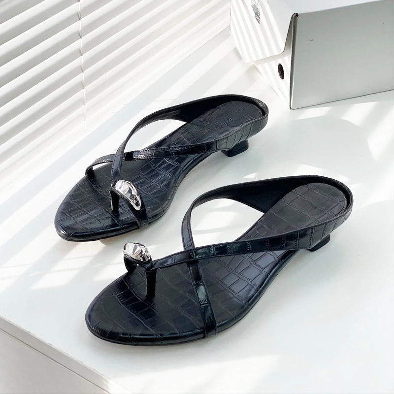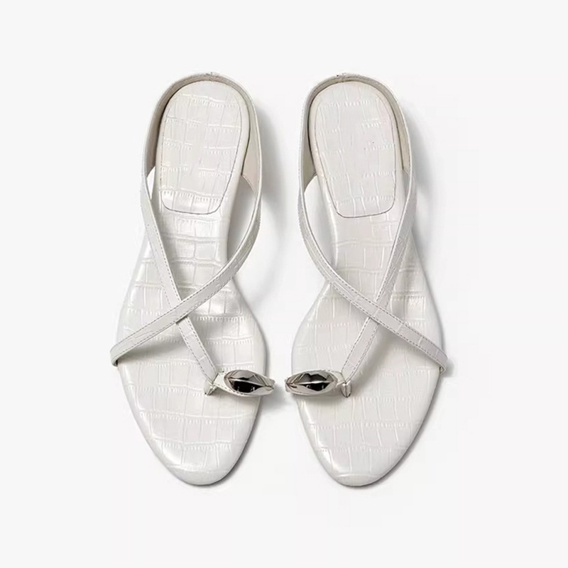 여름 아우터로 착용하는 여성용 프렌치 메탈 플립플롭, 페어리 스타일 악어 패턴 로우힐 크로스 스트랩 캐주얼 만능 샌들스토어 가기