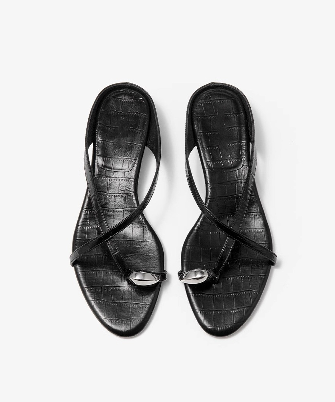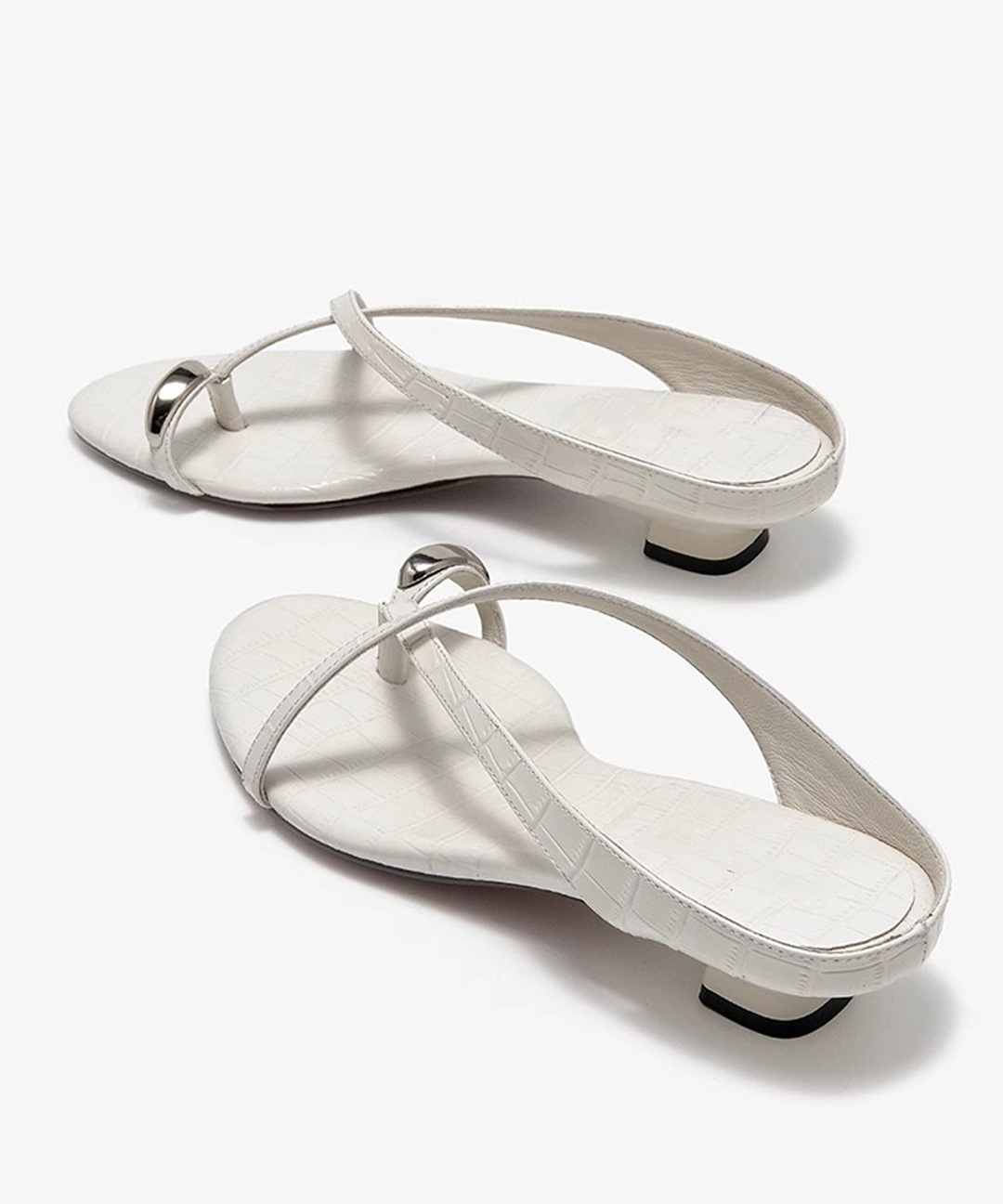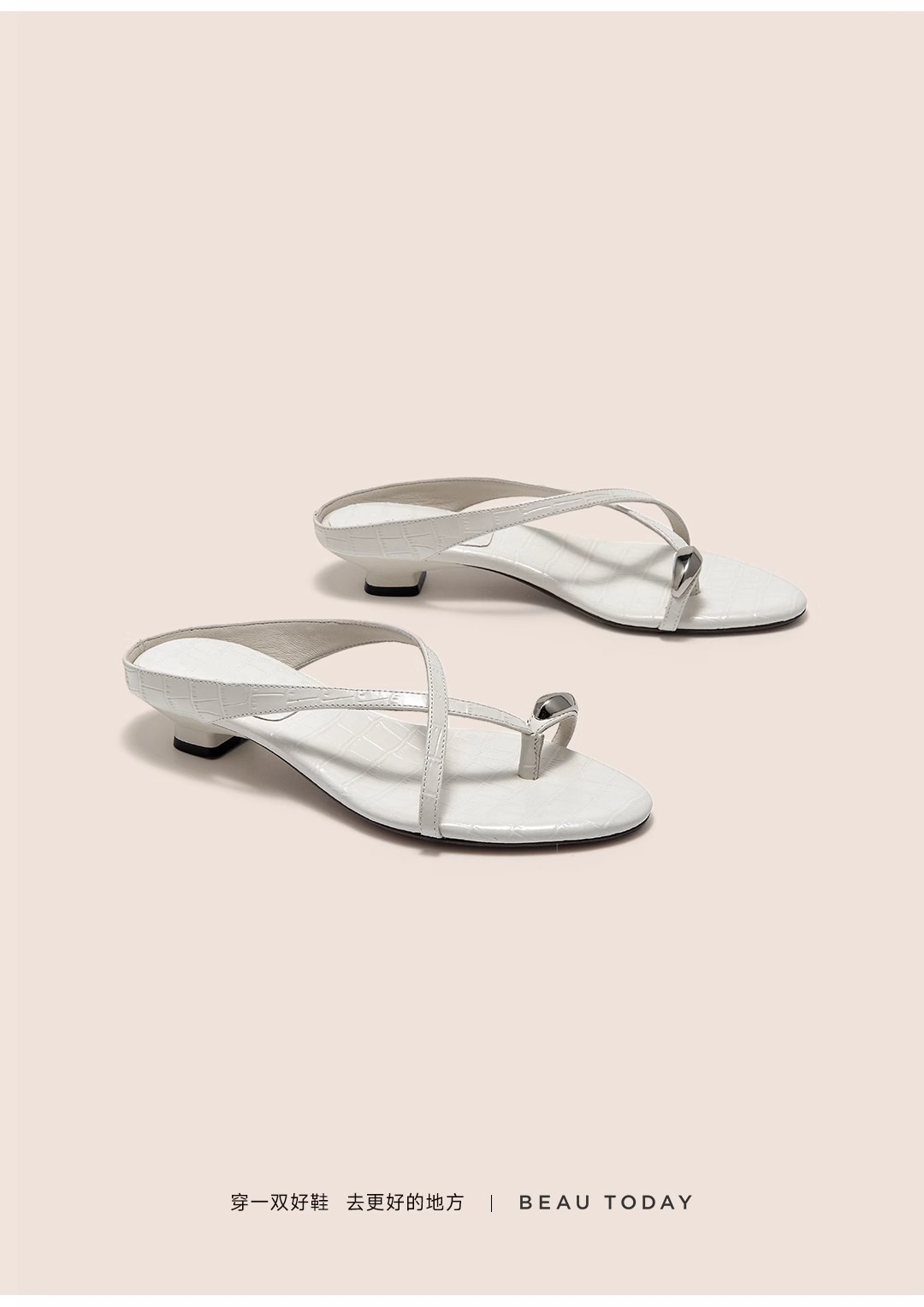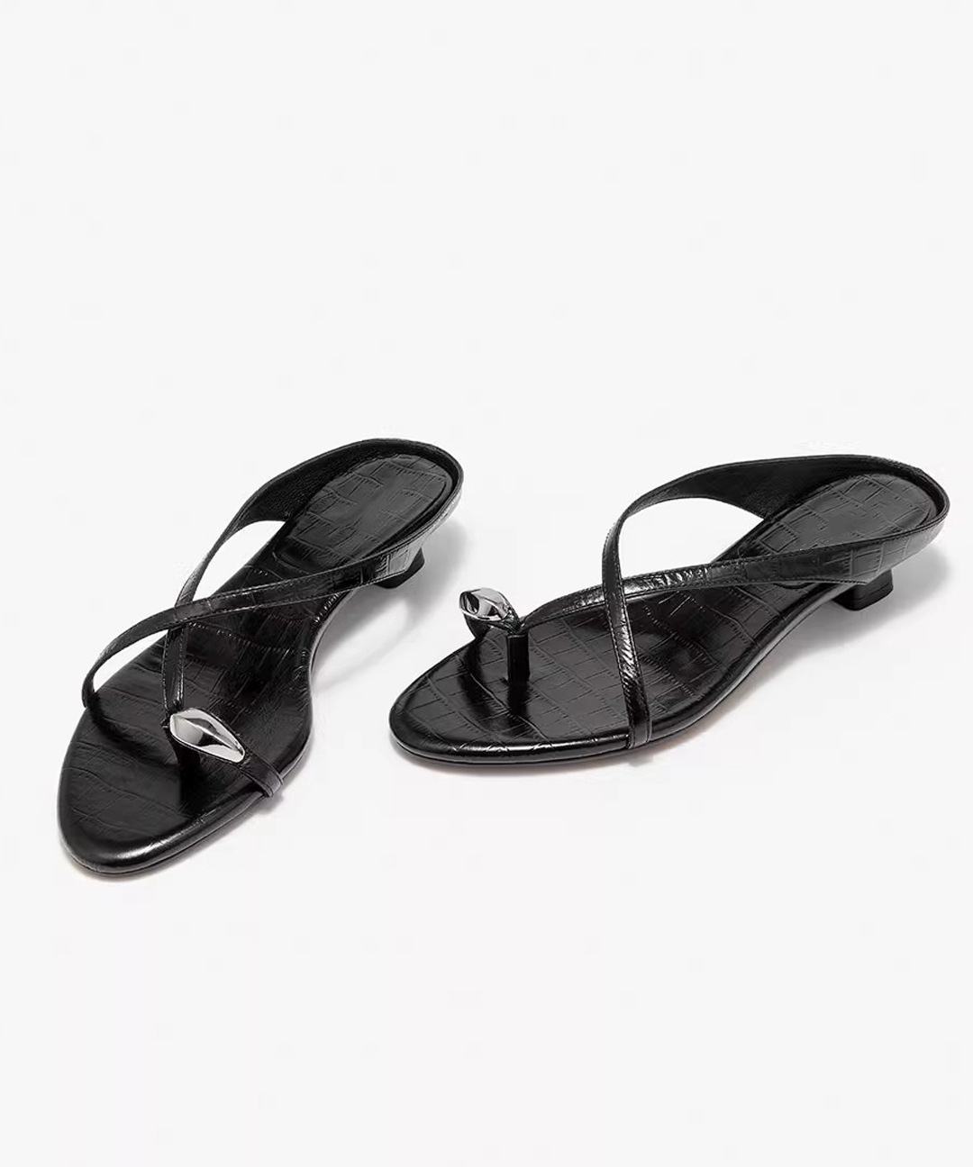 여름 아우터로 착용하는 여성용 프렌치 메탈 플립플롭, 페어리 스타일 악어 패턴 로우힐 크로스 스트랩 캐주얼 만능 샌들스토어 가기