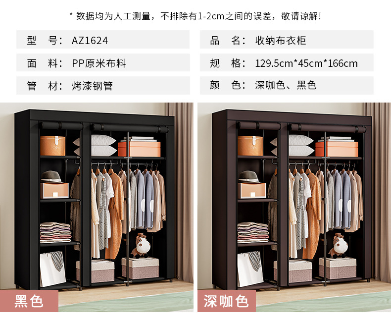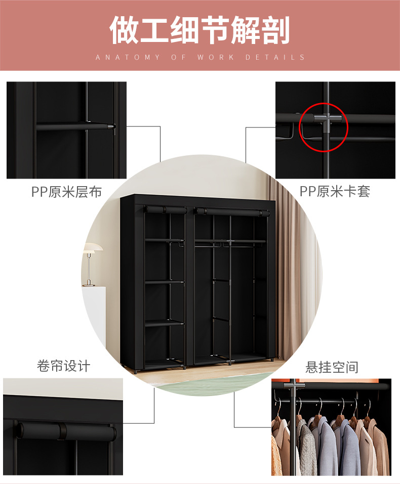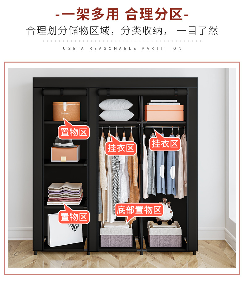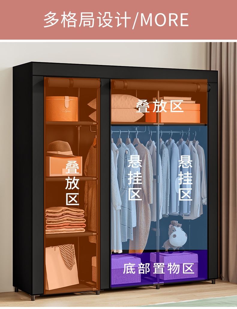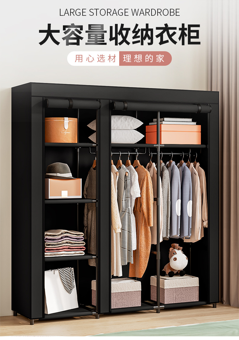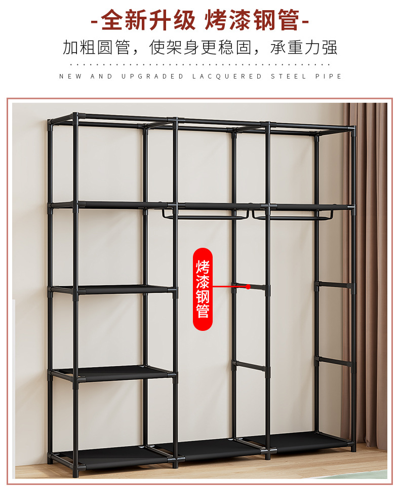 국경 간 인기 판매 옷장 침실 천 옷장 세련된 간단한 강철 프레임 방진 기숙사 보관 및 정리 창의적인 옷장스토어 가기
