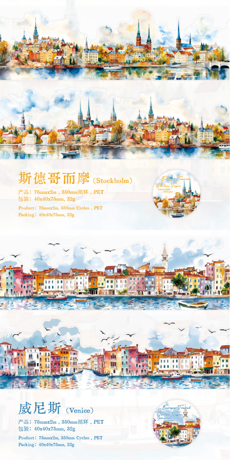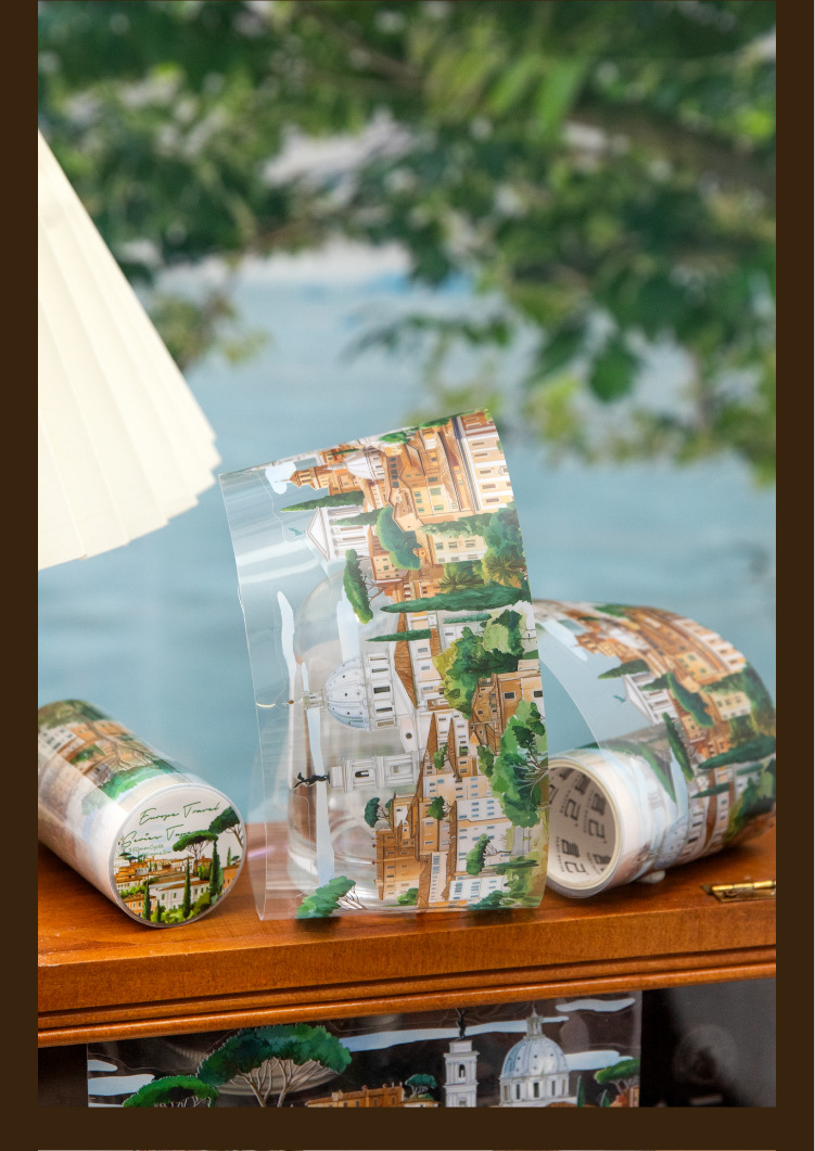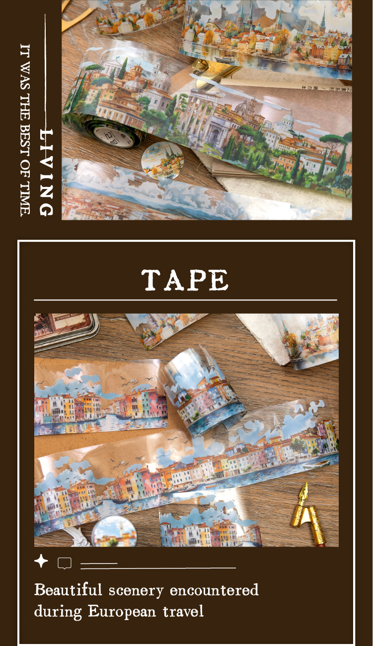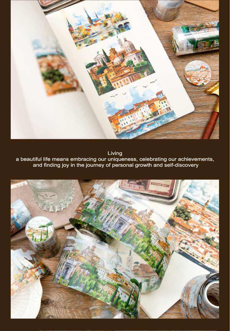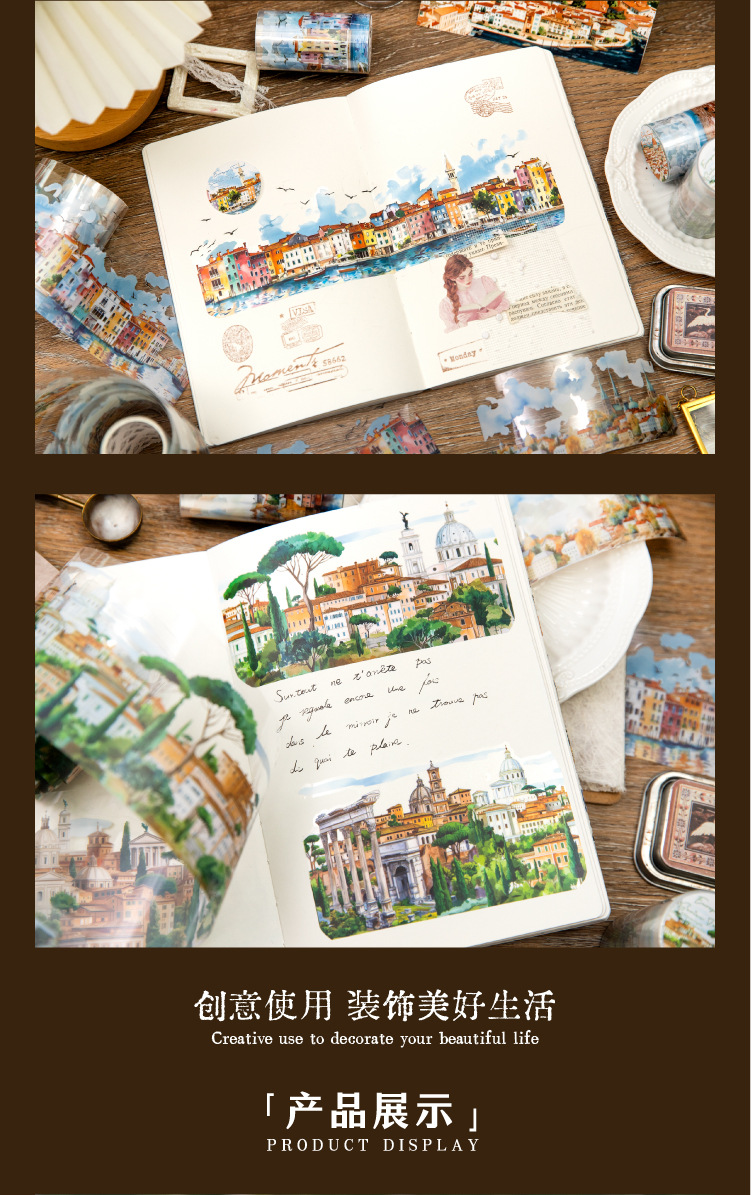 유럽 여행 PET 테이프 복고풍 문학 치유 유럽 도시 다용도 핸드북 장식 재료 스티커