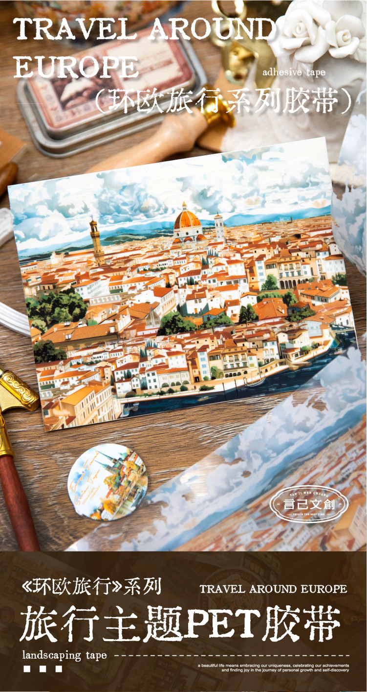 유럽 여행 PET 테이프 복고풍 문학 치유 유럽 도시 다용도 핸드북 장식 재료 스티커스토어 가기