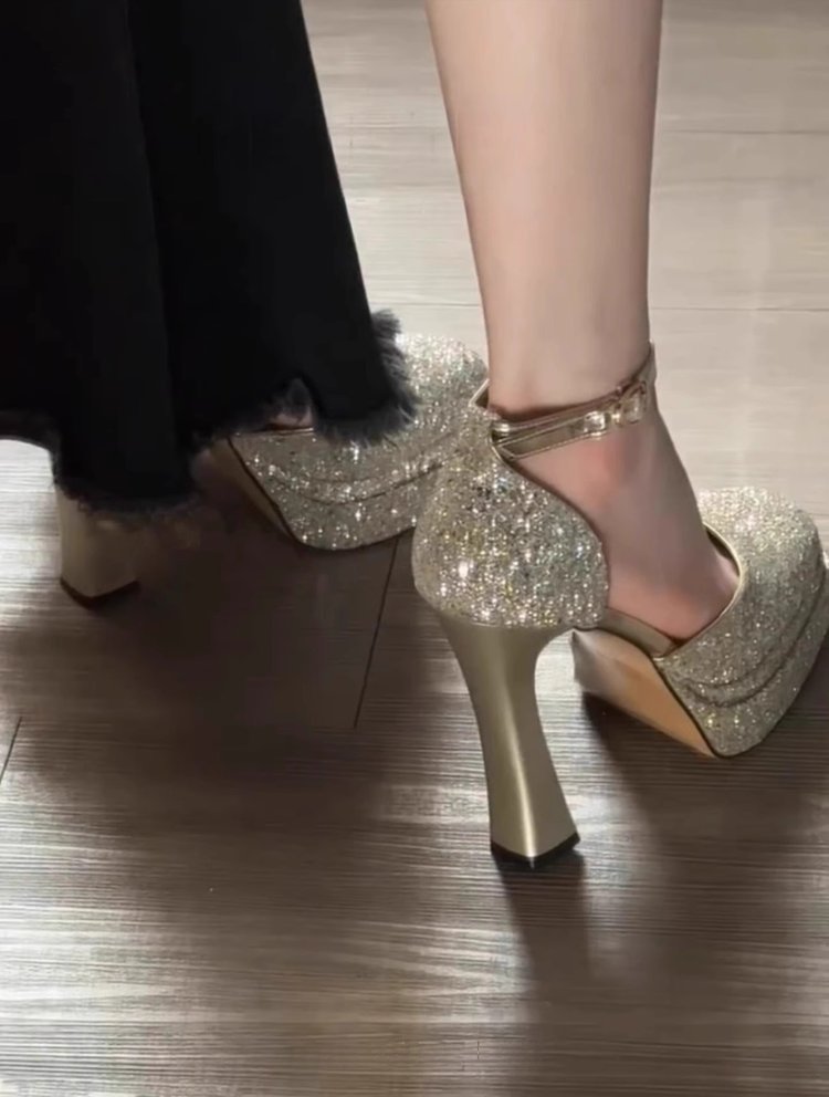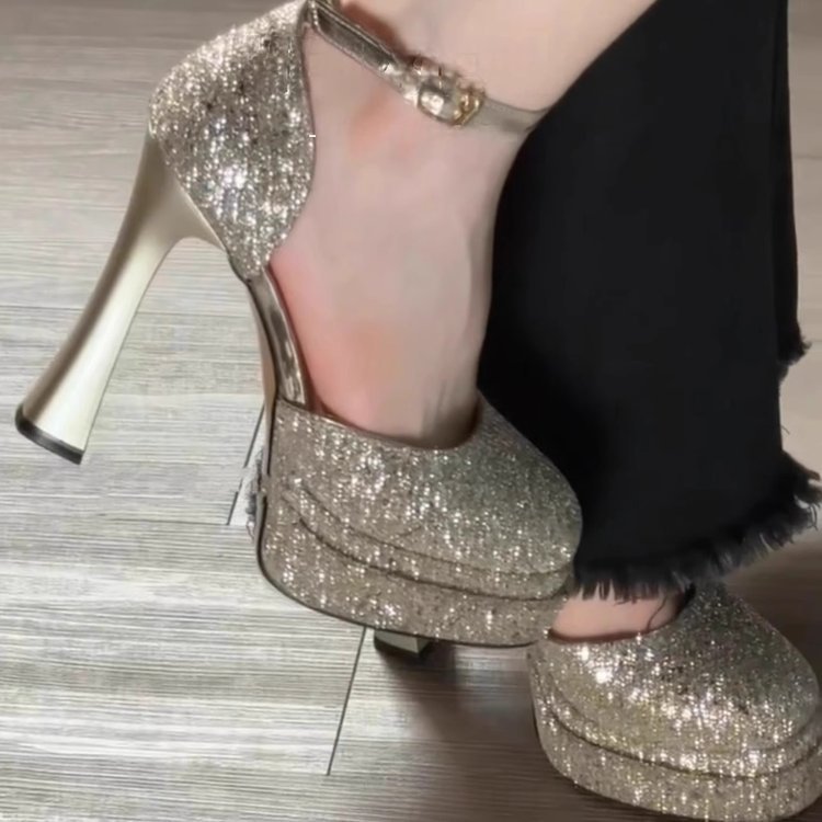여성을위한 두꺼운 굽 모델 패션쇼 신발 2025 새로운 패션 섹시한 더블 레이어 방수 플랫폼 두꺼운 밑창 신발 여성 하이힐