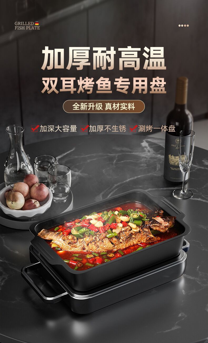 붙지 않는 생선구이 접시, 직사각형 가정용 탄소강 트레이, 깊은 접시, 고급 바베큐 바베큐 접시, 전자레인지 생선구이 특수