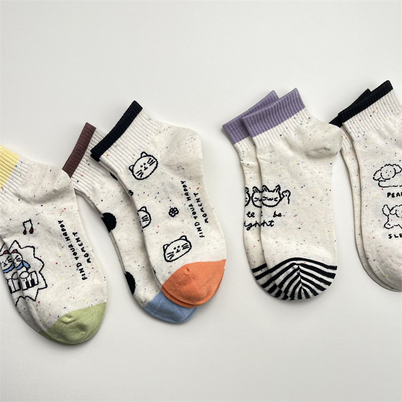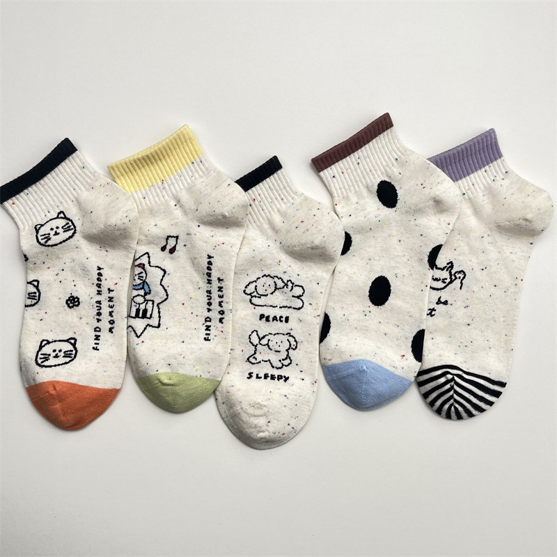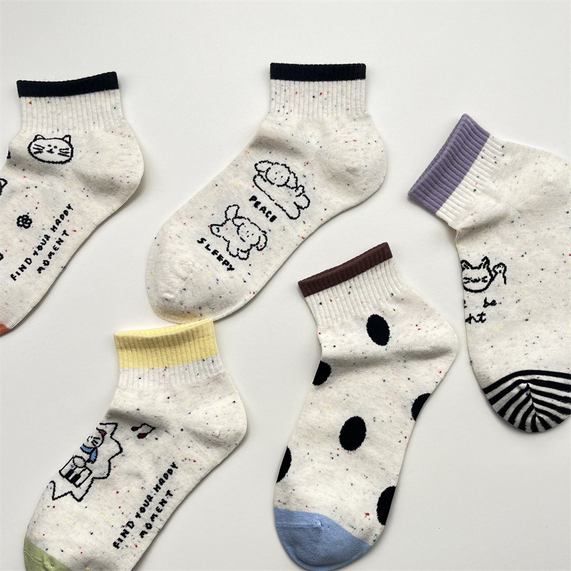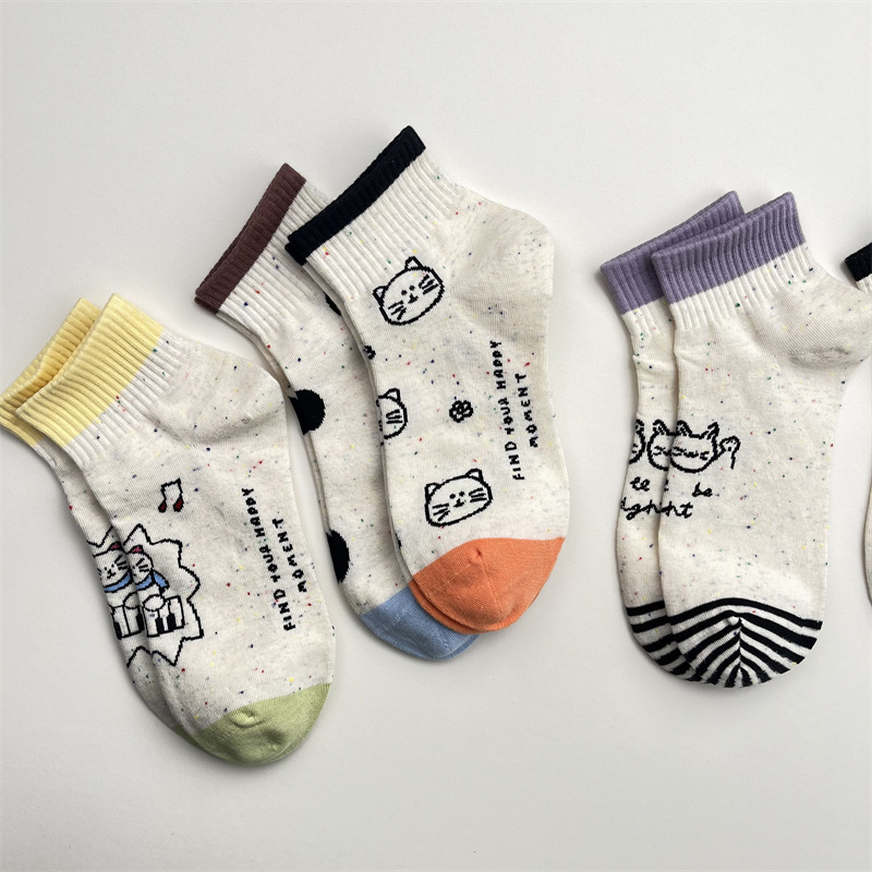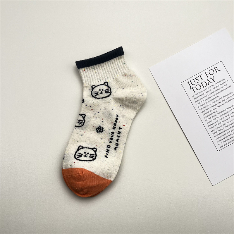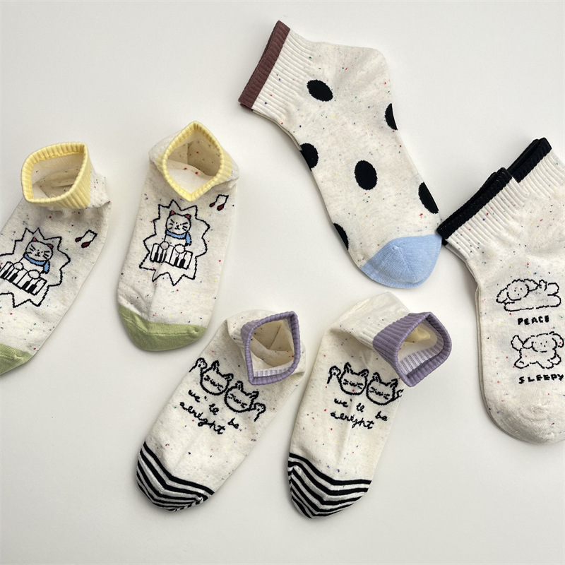 한국식 포인트 원사 귀여운 만화 고양이 로우 탑 여성 양말 봄과 여름 간단한 올 매치 폴카 도트 짧은 양말 뼈없는 면 양말스토어 가기