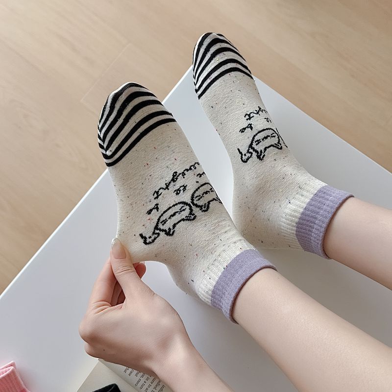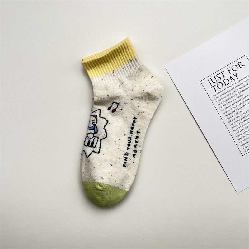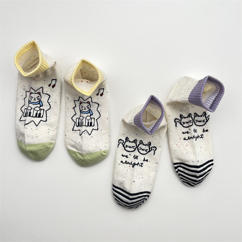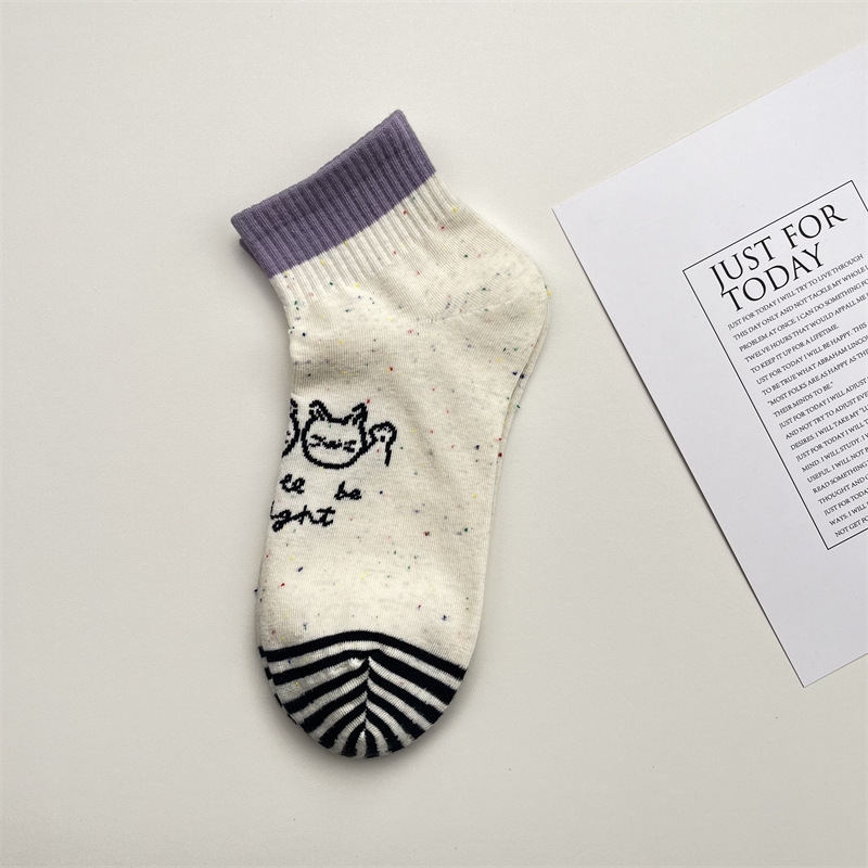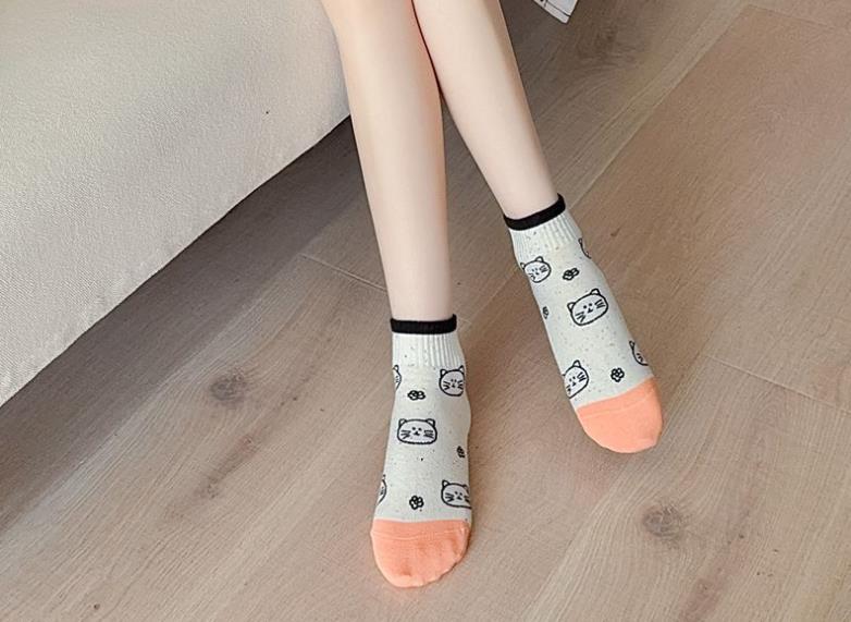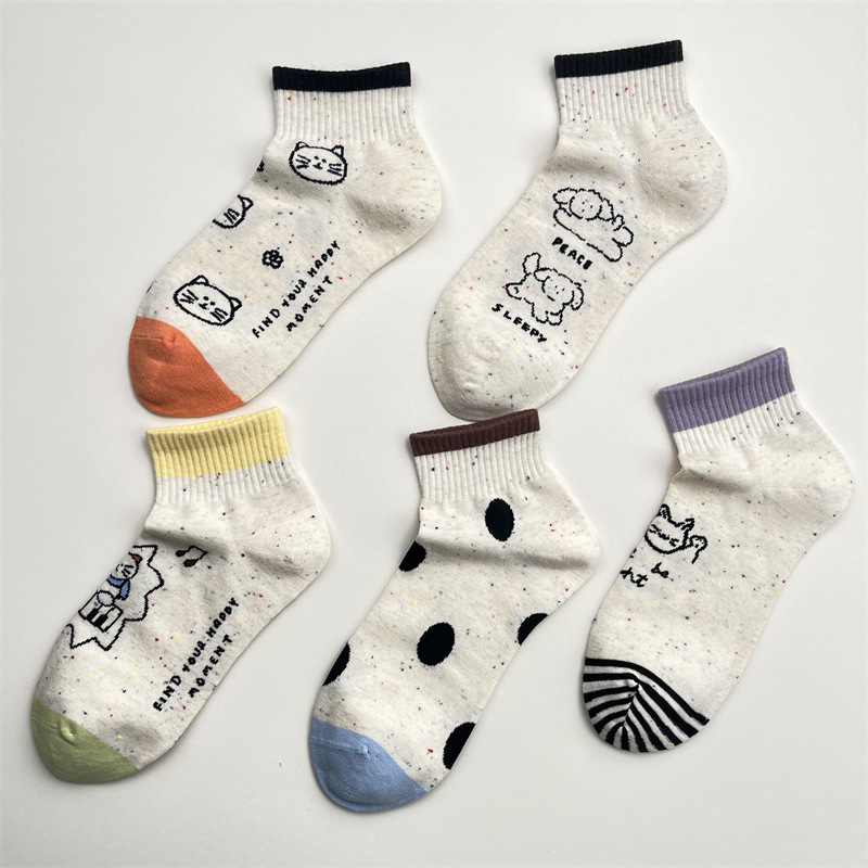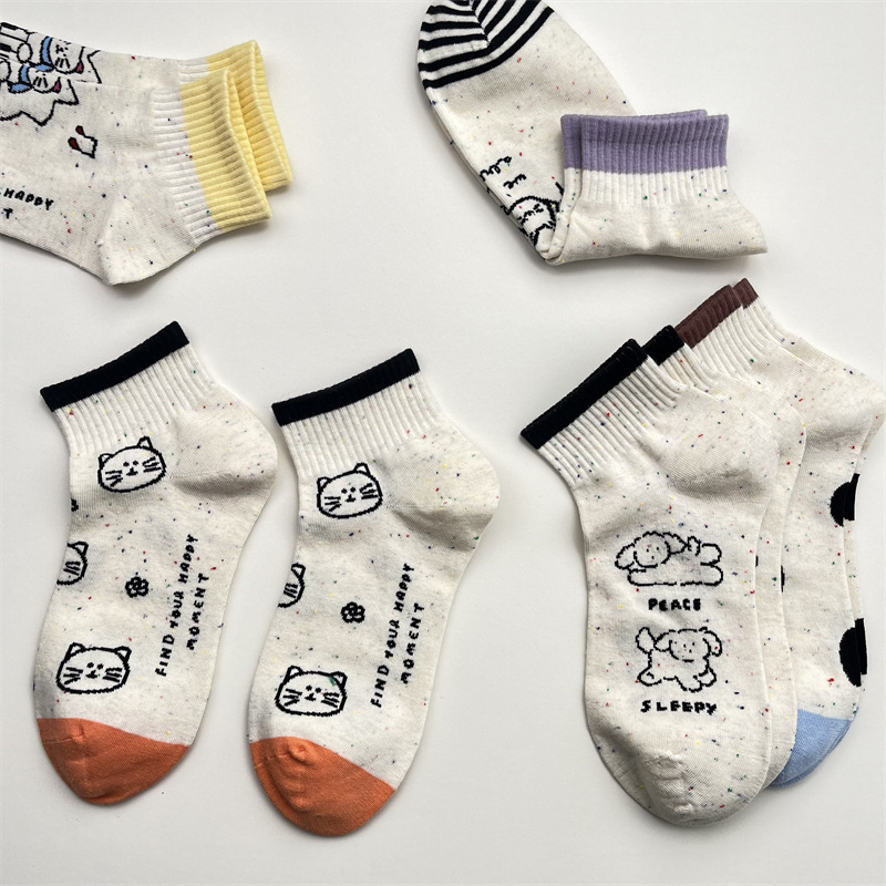 한국식 포인트 원사 귀여운 만화 고양이 로우 탑 여성 양말 봄과 여름 간단한 올 매치 폴카 도트 짧은 양말 뼈없는 면 양말스토어 가기