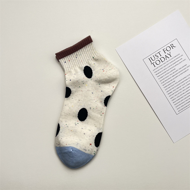 한국식 포인트 원사 귀여운 만화 고양이 로우 탑 여성 양말 봄과 여름 간단한 올 매치 폴카 도트 짧은 양말 뼈없는 면 양말