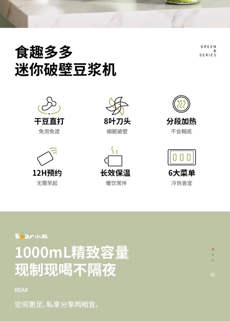 리틀베어 미니 벽파괴 두유기 DJJ-Q08H7 원클릭 세척 및 예약 가능 1L 정부 및 기업 선물 단체 주문스토어 가기