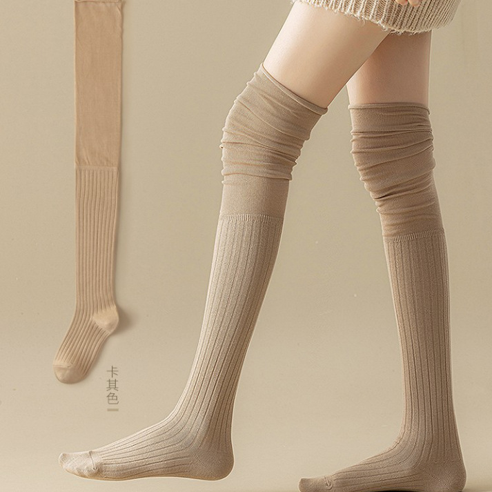 레트로 레이지 스타일 양말, 그레이 파일 양말, 무릎 위 양말, 슬리밍 스플라이스 하이 부츠, 면 거즈 양말, 레이어드 양말