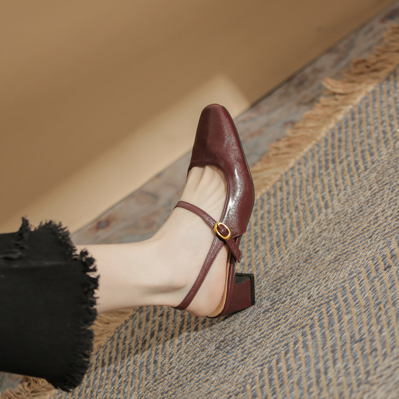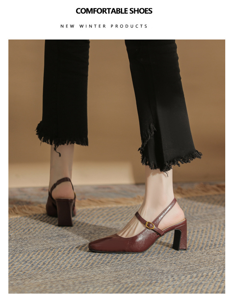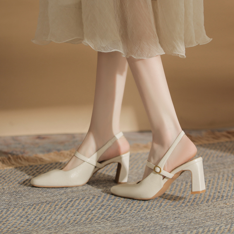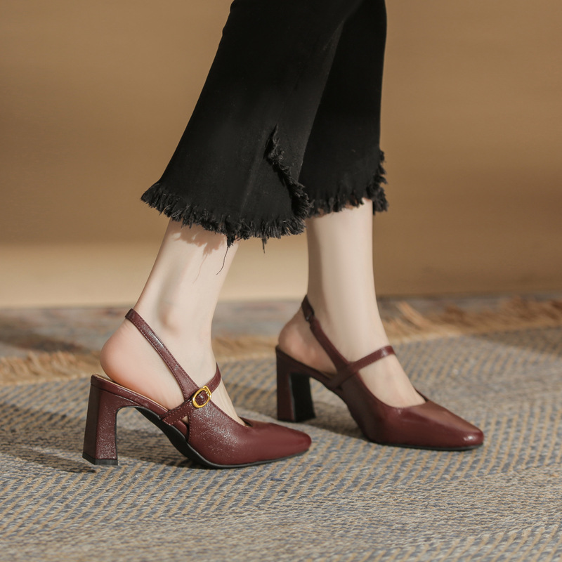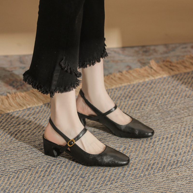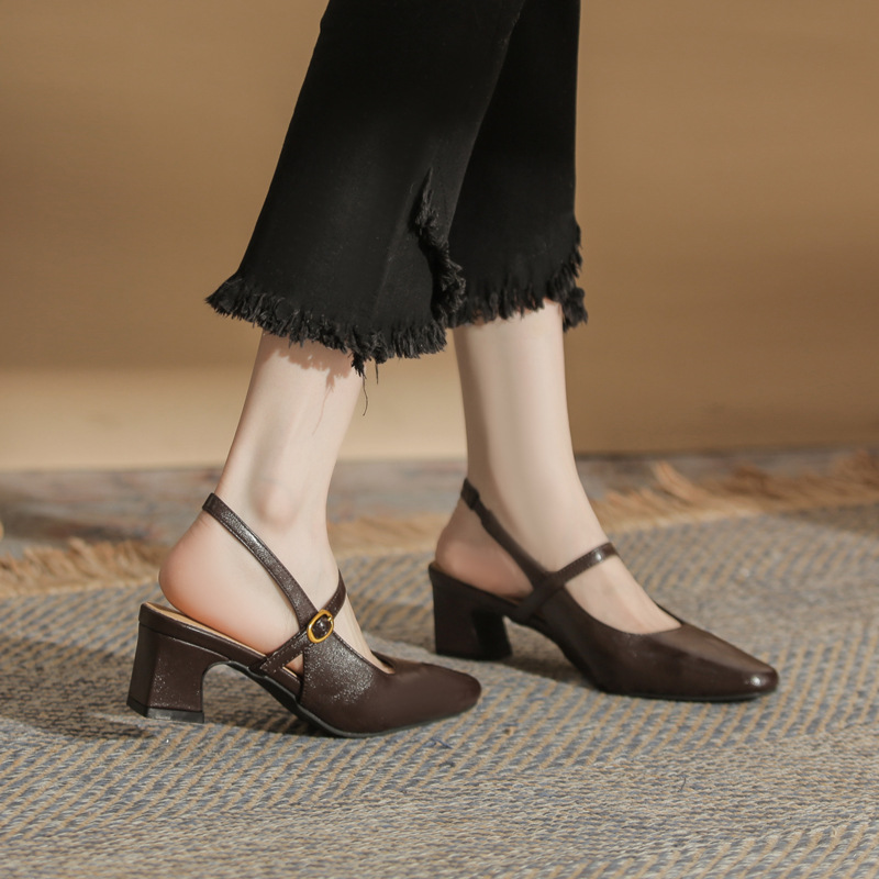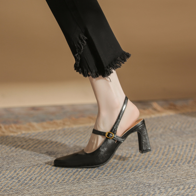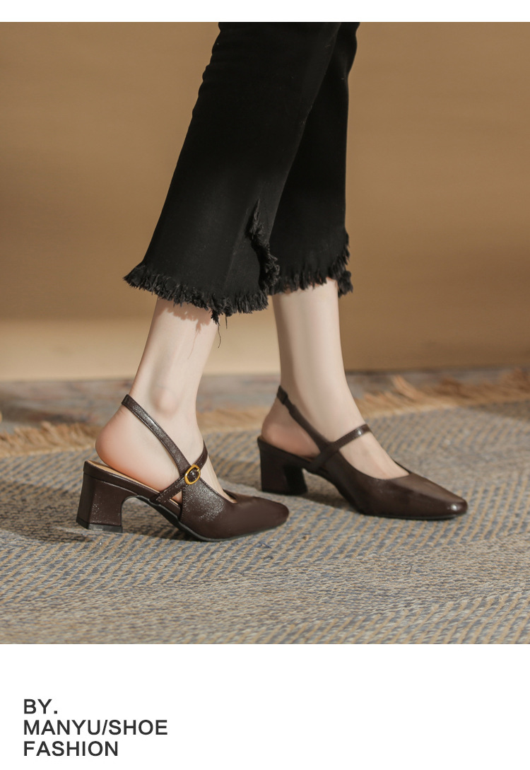 Jin Gang J4703_J6803 하이힐 2025 새로운 여름 광장 머리 두꺼운 힐 모든 경기 뒤 빈 슬리퍼