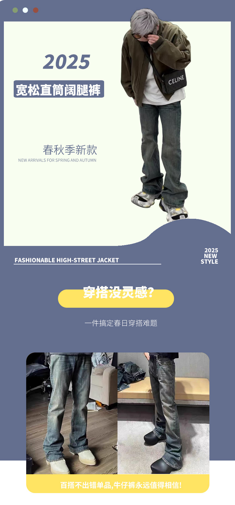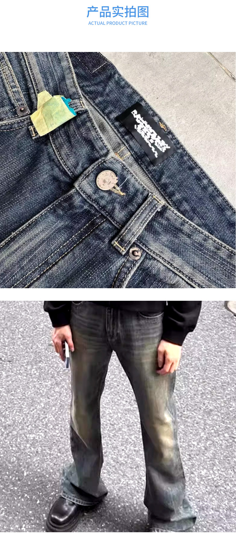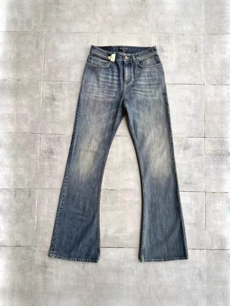 남성용 맞춤형 부츠컷 슬러브 코튼 팬츠, 페이디드 머드 다이 마이크로 플레어 청바지, 아메리칸 하이 스트리트 레트로 팬츠스토어 가기