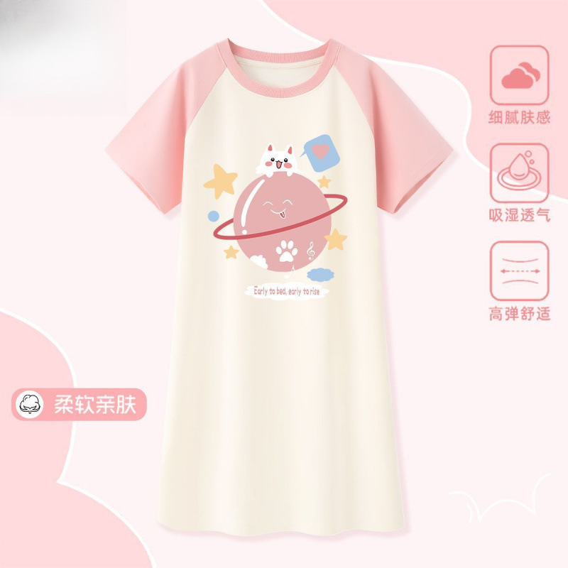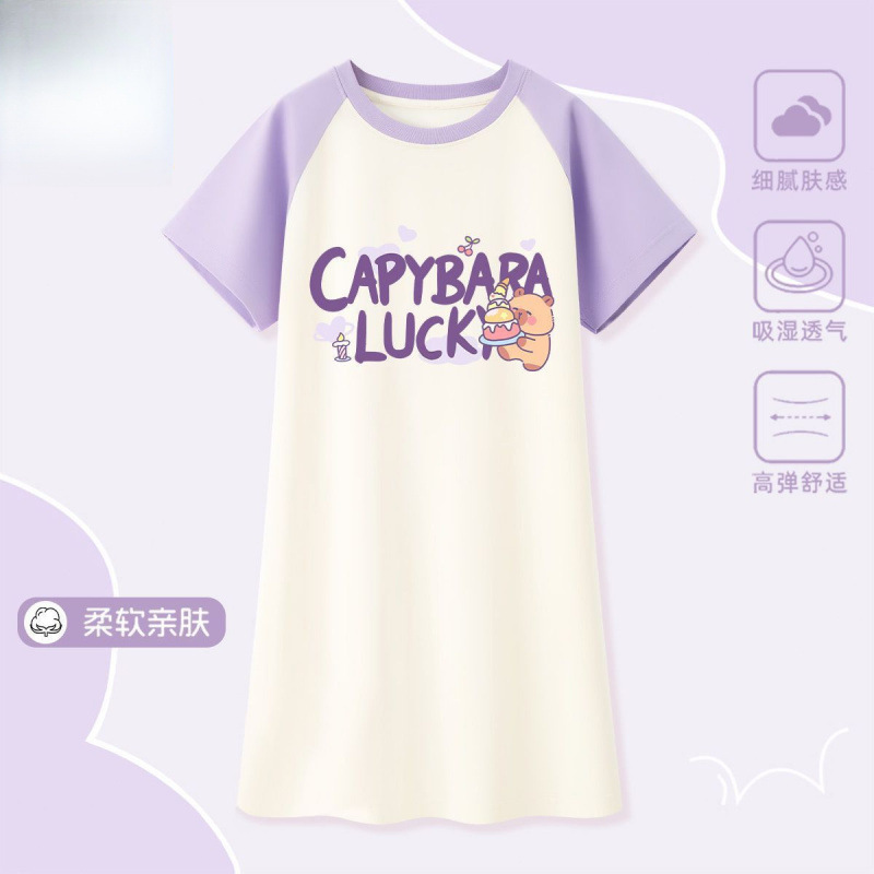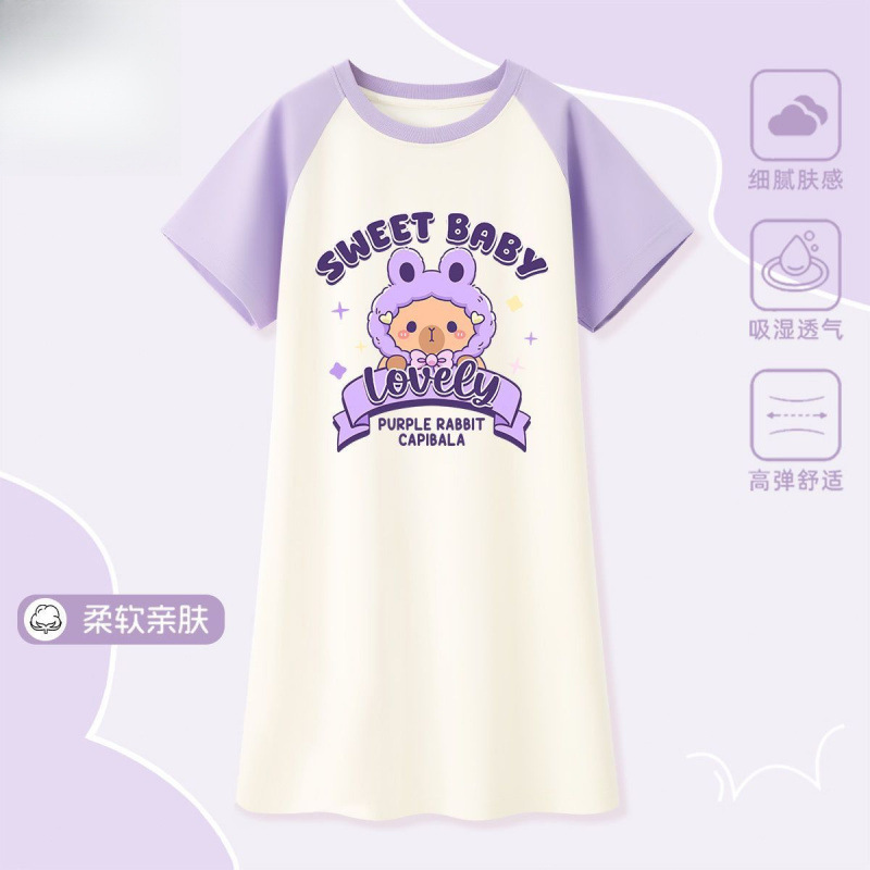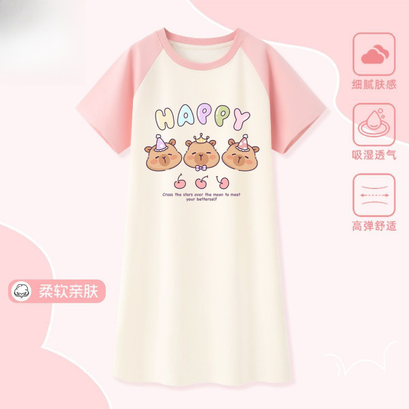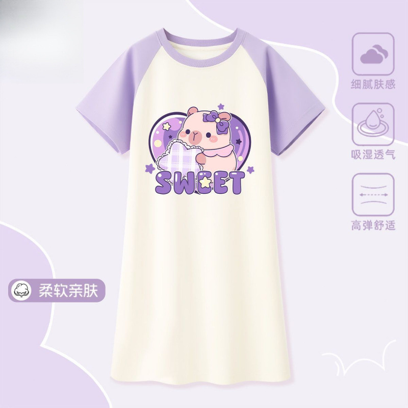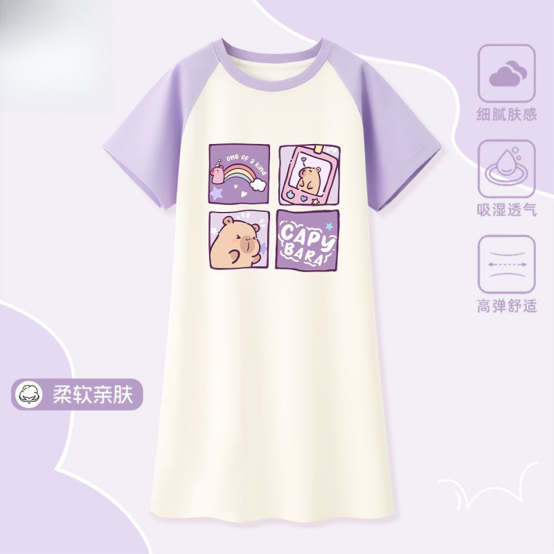 소녀 아이스 실크 잠옷 어린이 2025 새로운 카피발라 잠옷 큰 어린이 피부 친화적 인 홈 옷 공주 스타일 짧은 소매스토어 가기