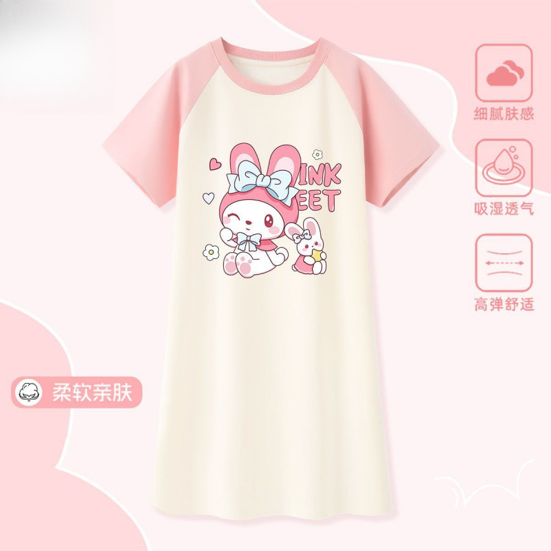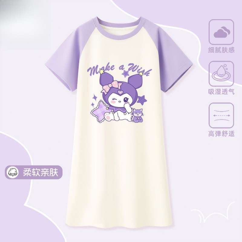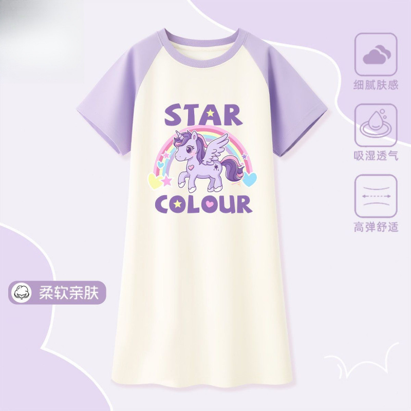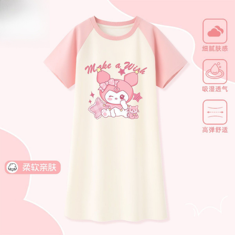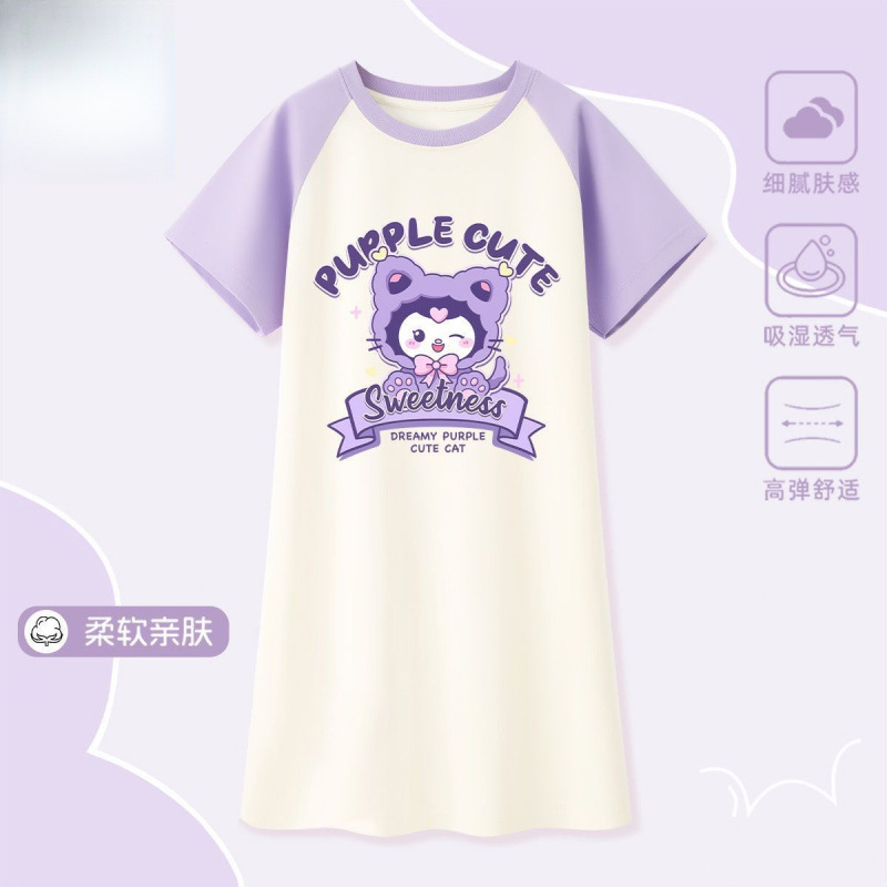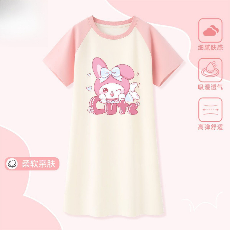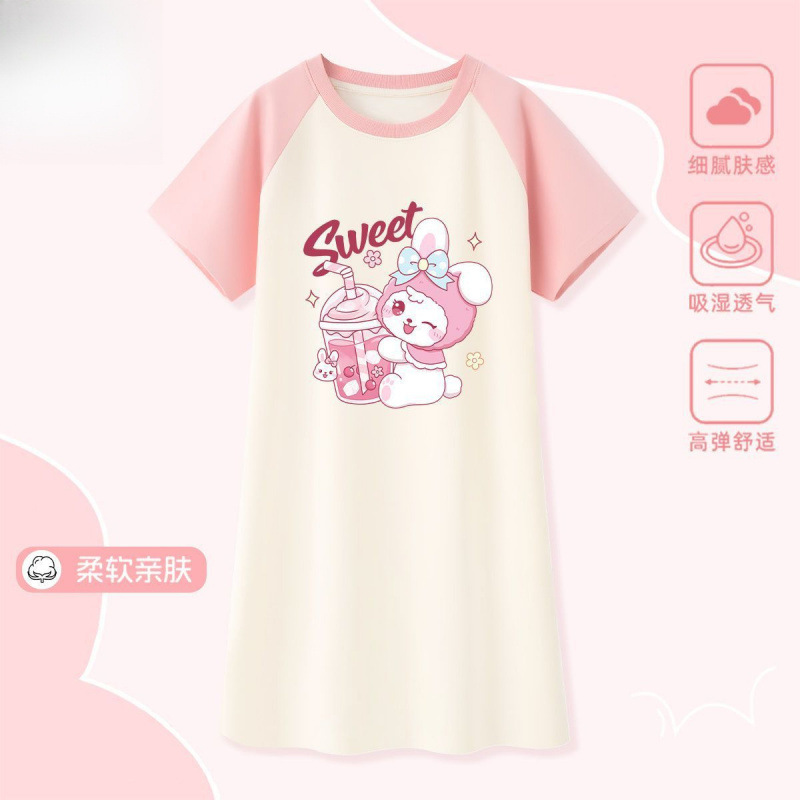 소녀 아이스 실크 잠옷 어린이 2025 새로운 카피발라 잠옷 큰 어린이 피부 친화적 인 홈 옷 공주 스타일 짧은 소매스토어 가기