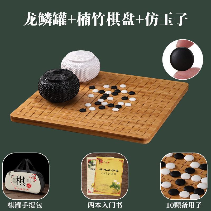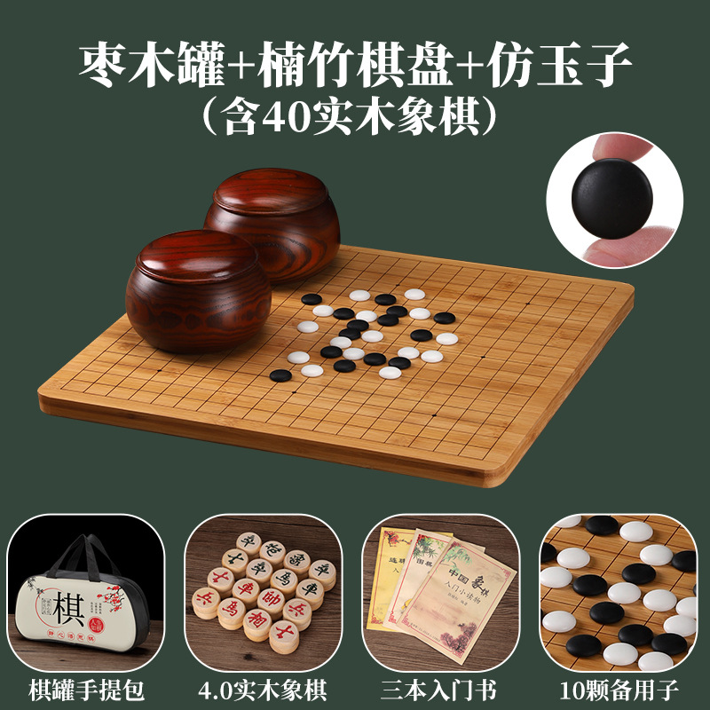 • 단단한 나무 체스 세트 + 뚜껑이 높은 대나무 항아리 + 모조 옥 + 대나무 체스판 + 핸드백/무료 책 3권 + 액세서리