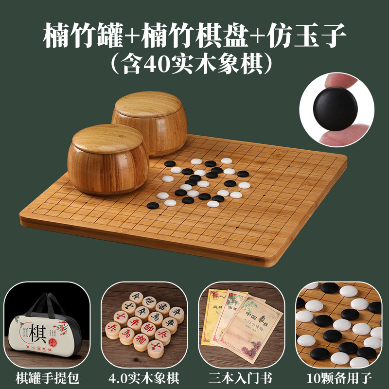 • 원목 체스 세트 + 뚜껑이 높은 대나무 항아리 + 윤야오지 + 대나무 체스판 + 핸드백 / 무료 도서 3권 + 액세서리