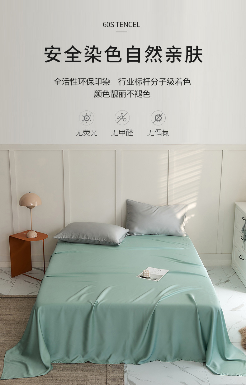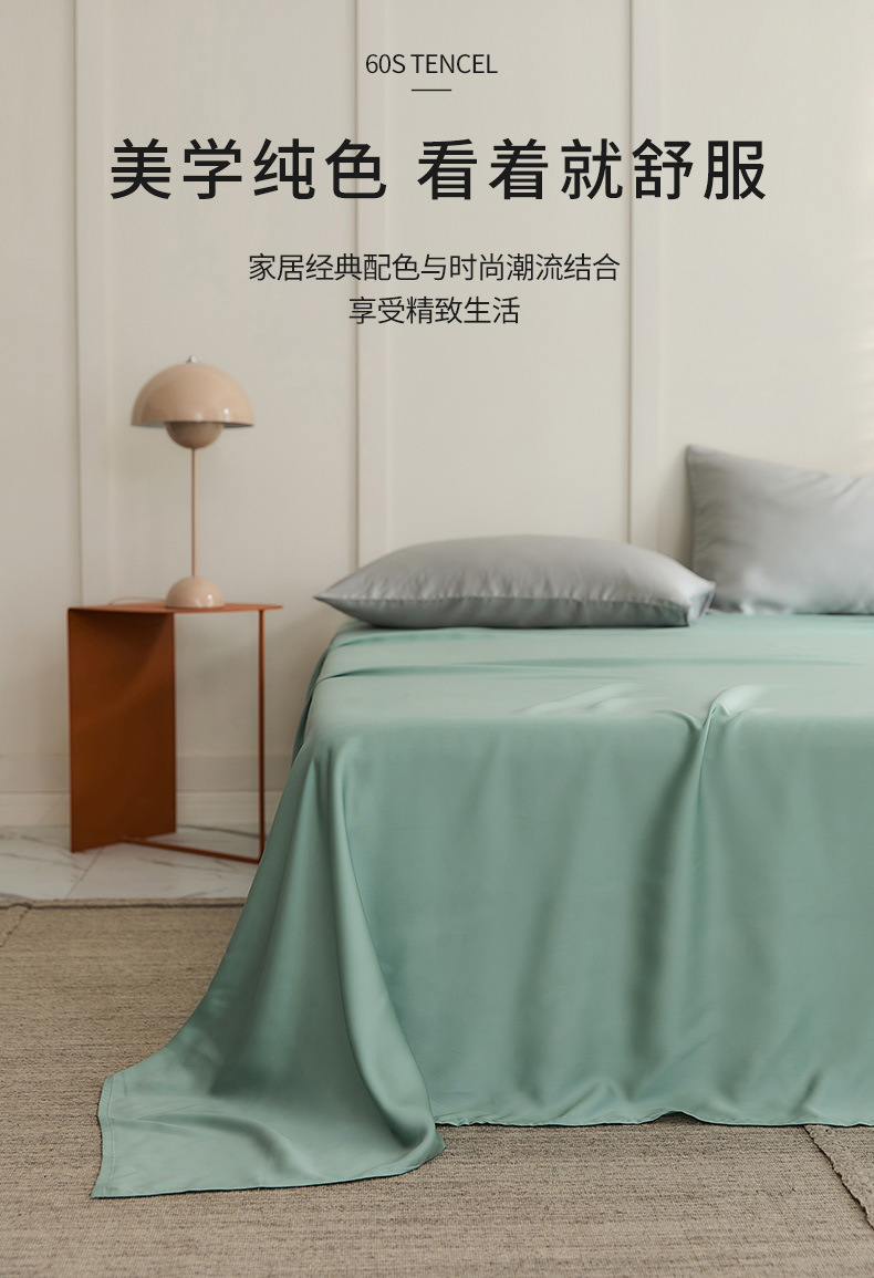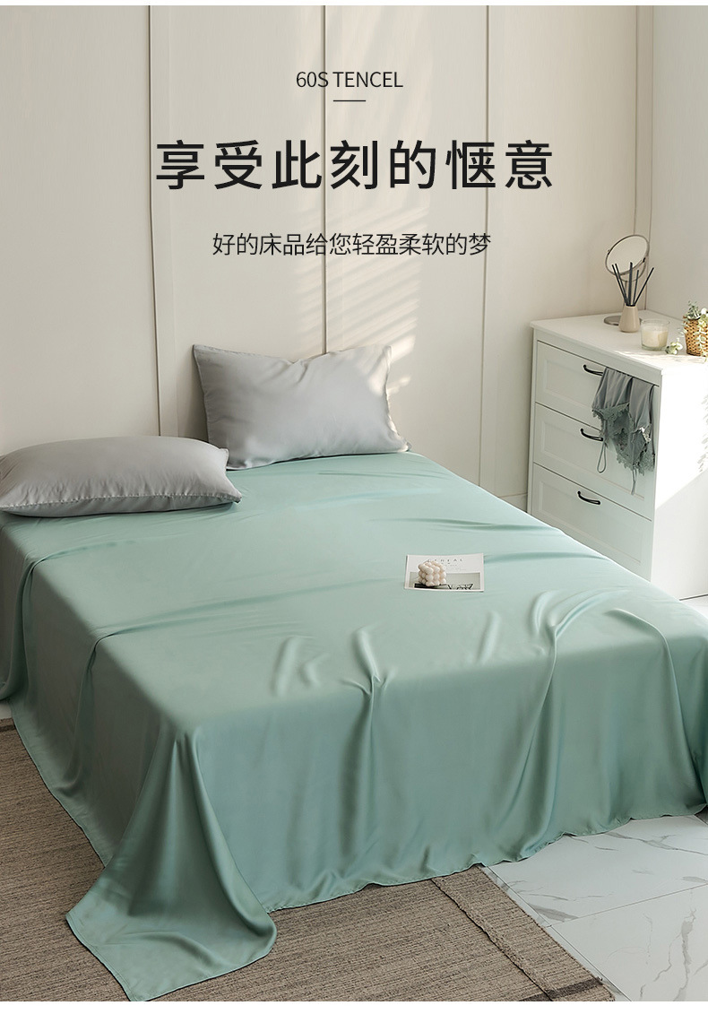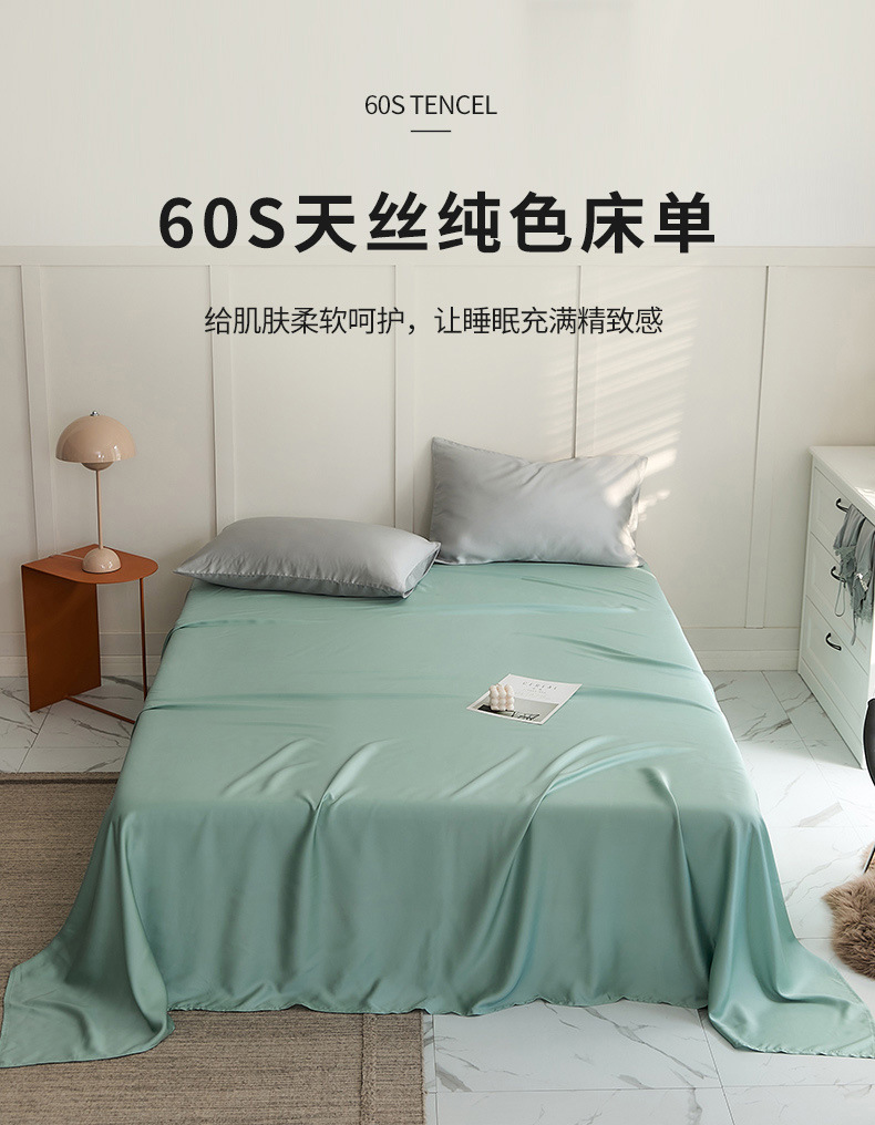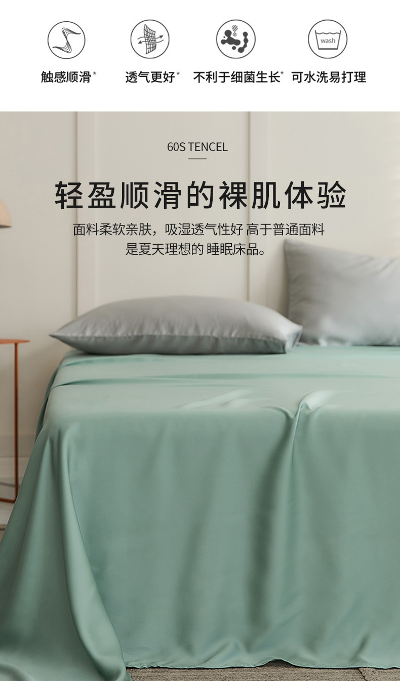새로운 60 Tencel 시트 단일 아이스 실크 침대보 여름 벌거 벗은 수면 시트 1.8 미터 단색 3 피스 도매