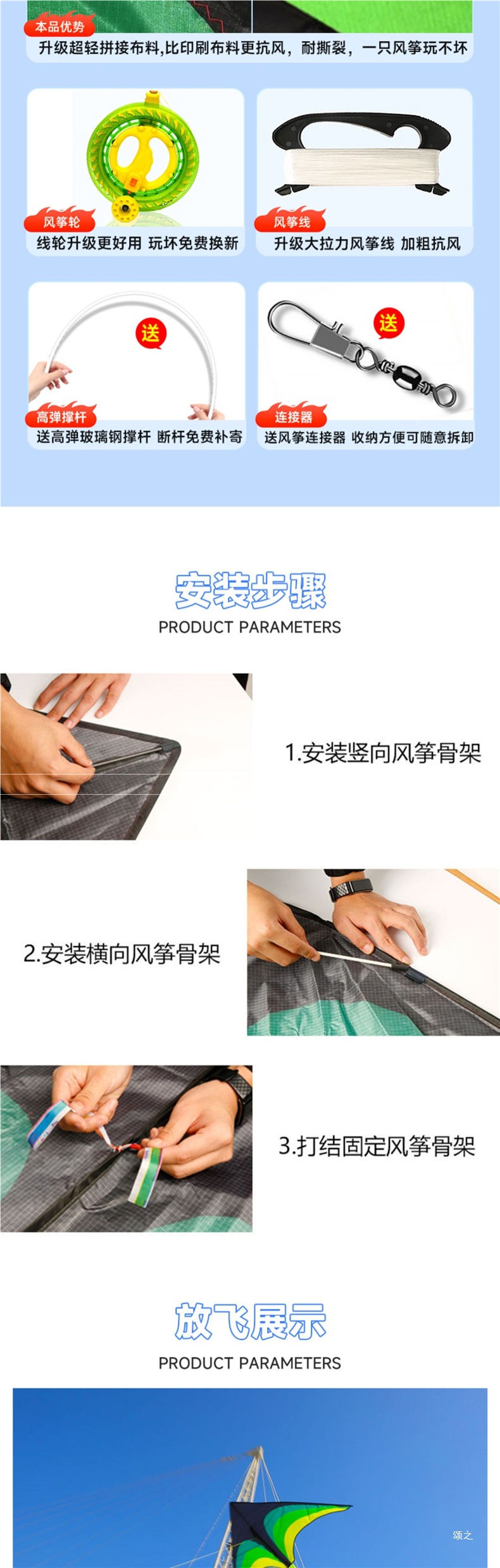 • [업그레이드된 500m 크리스탈 휠] 1.6m 연 + 5m 꼬리 [품질 보증, 비행하지 않을 경우 보상]