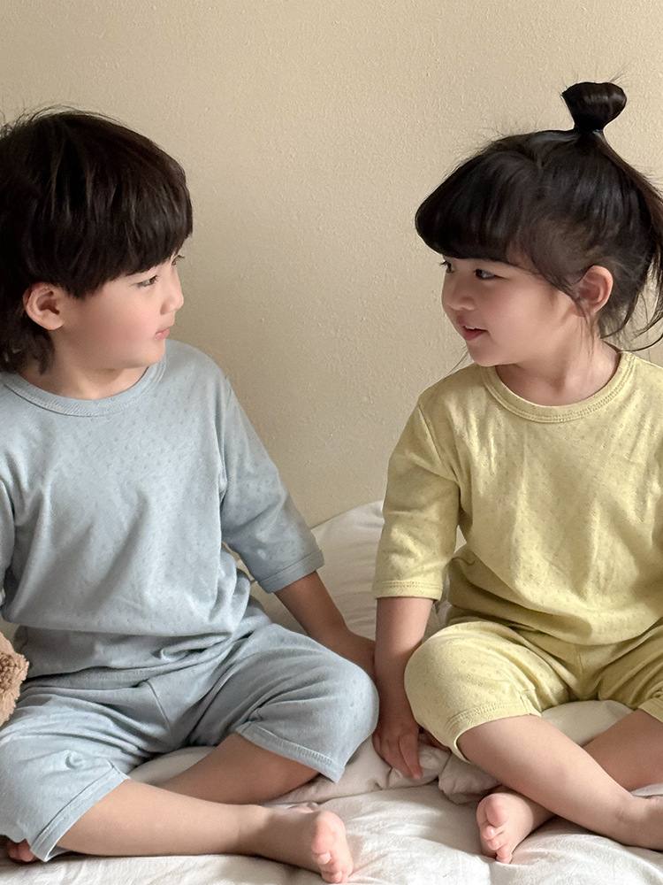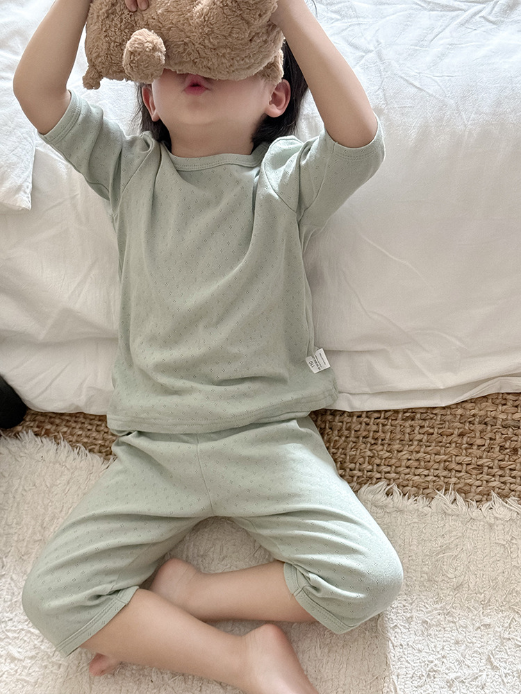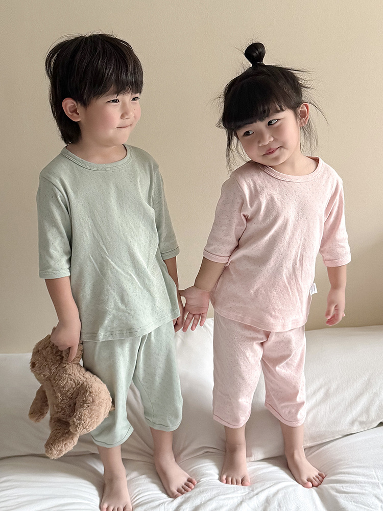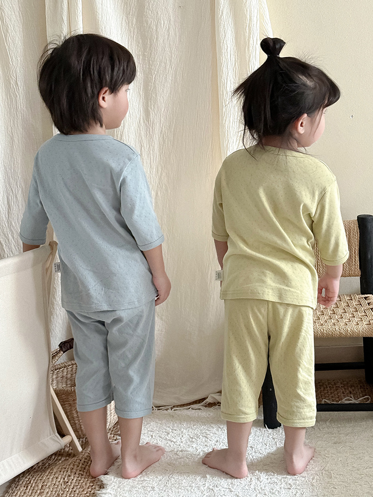 어린이 잠옷 얇은 순면 카테고리 소년 소녀 7 소매 여름 세트 아기 에어컨 홈 의류 여름 옷스토어 가기