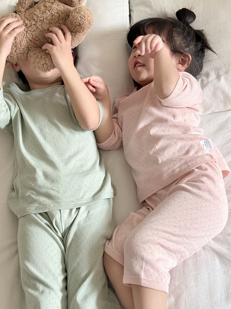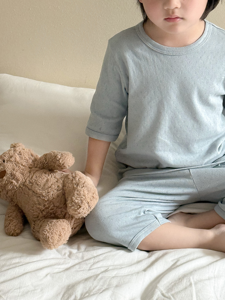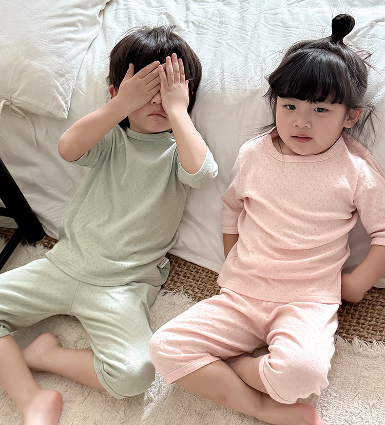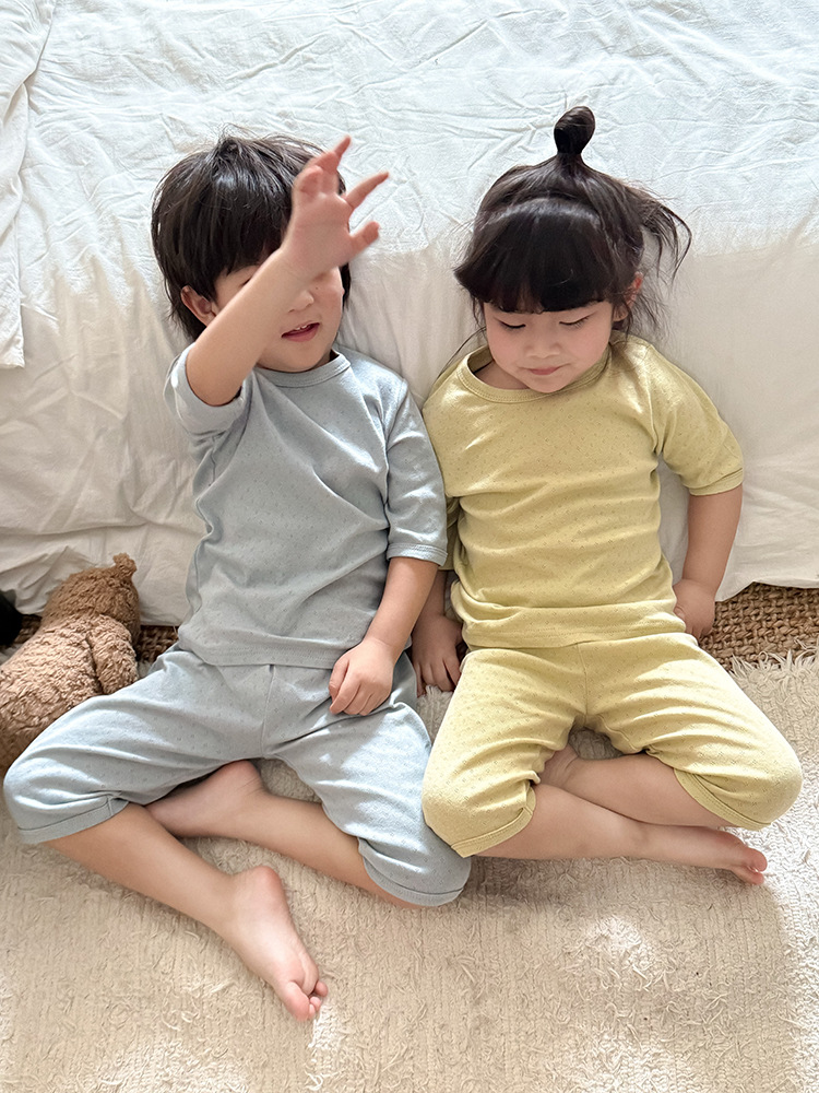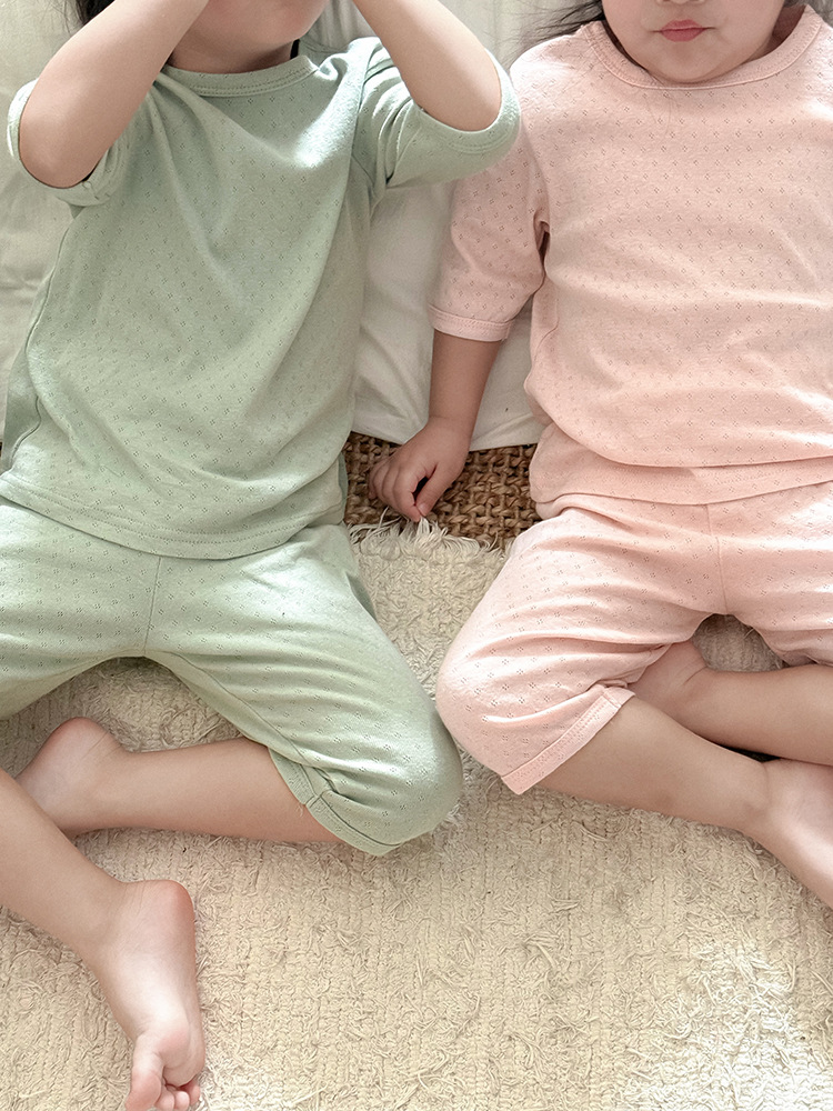 어린이 잠옷 얇은 순면 카테고리 소년 소녀 7 소매 여름 세트 아기 에어컨 홈 의류 여름 옷스토어 가기