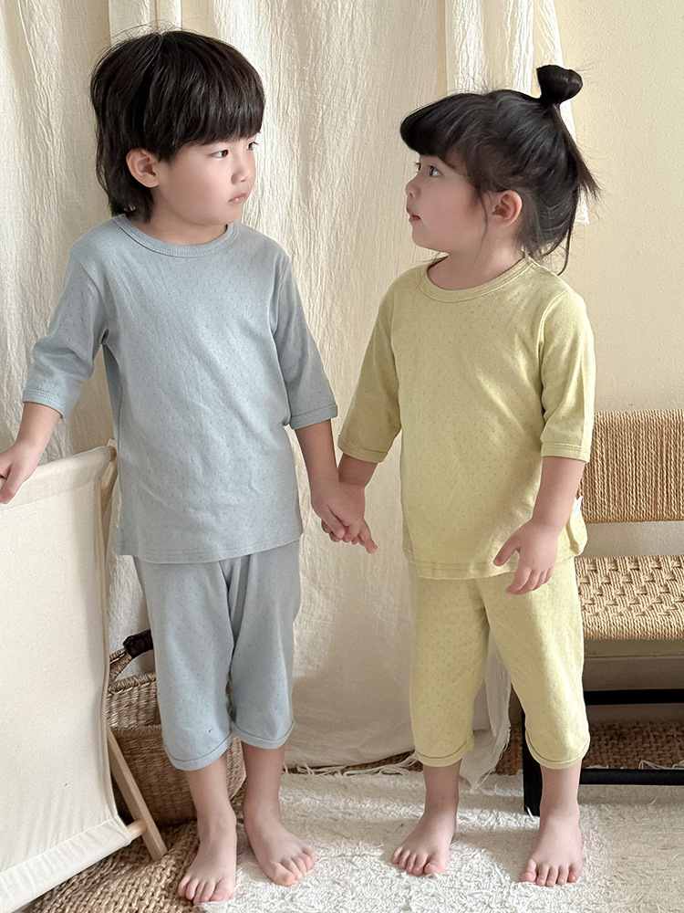 어린이 잠옷 얇은 순면 카테고리 소년 소녀 7 소매 여름 세트 아기 에어컨 홈 의류 여름 옷