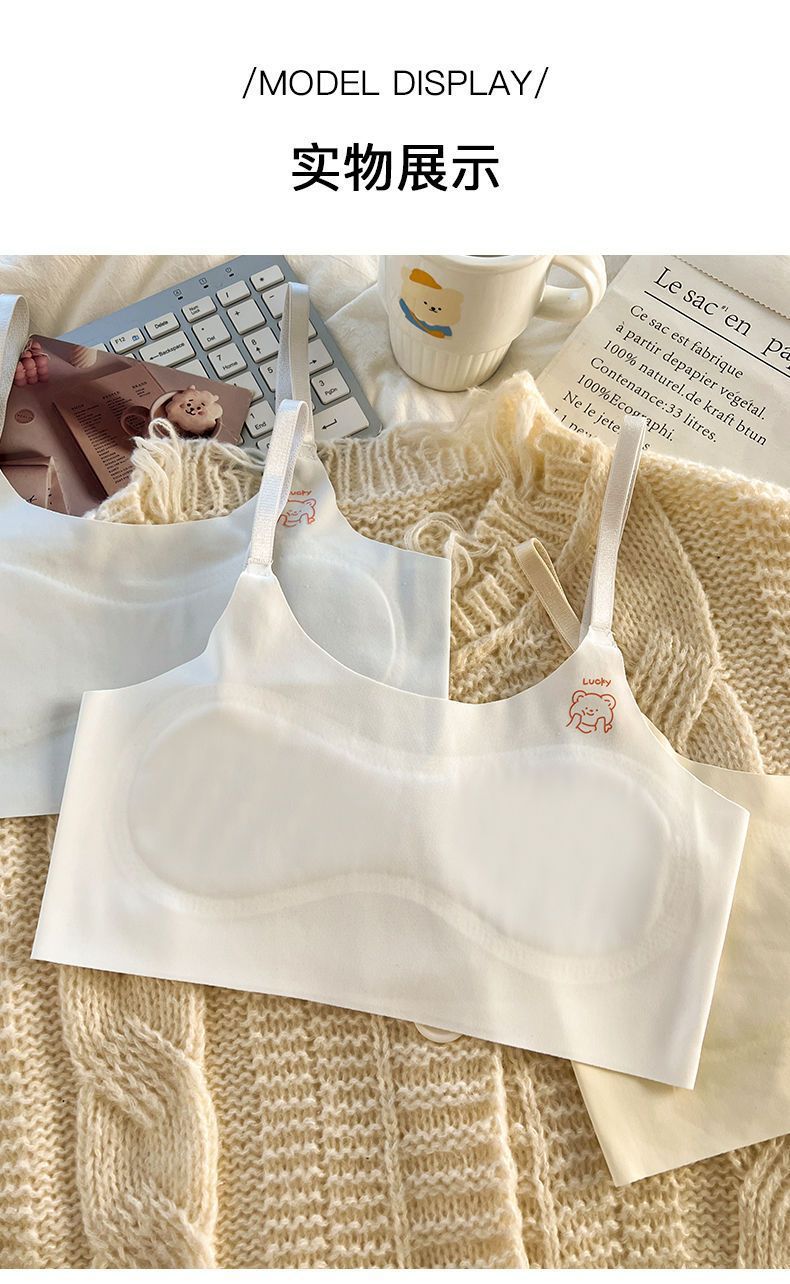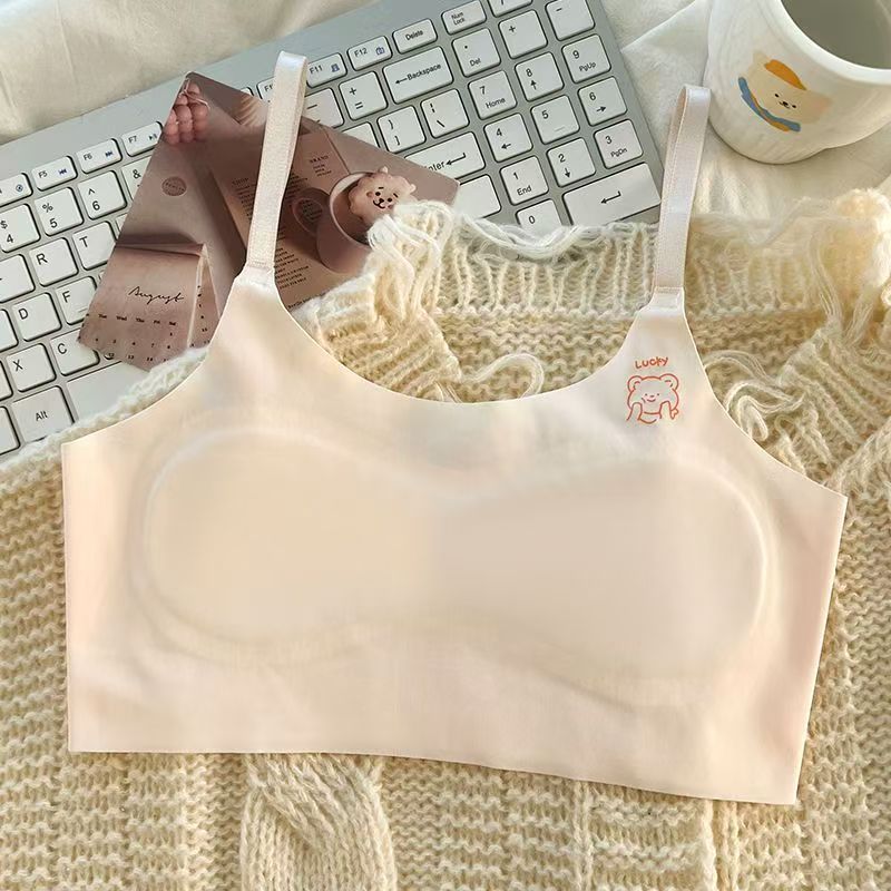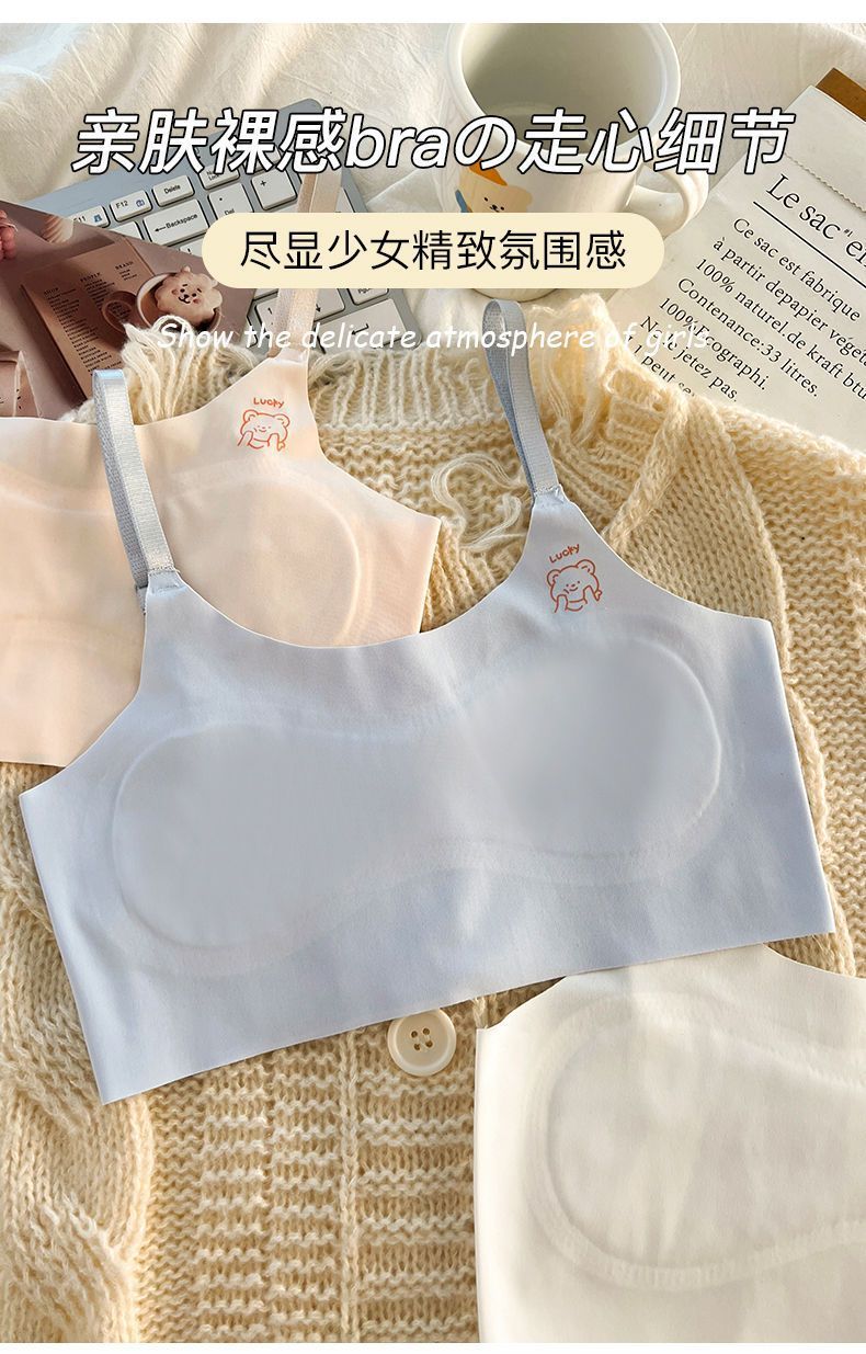 7-14세 여아용 속옷, 아이스 실크 무봉제 여아용 브라탑, 조끼형 보정속옷, 아름다운 등 라인스토어 가기