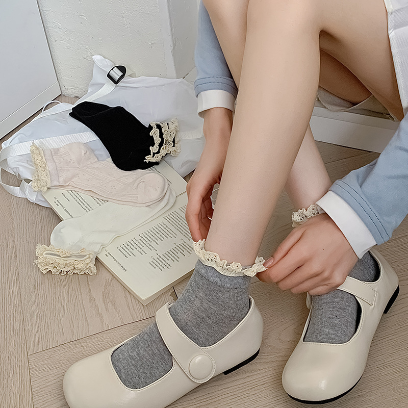 레이스 레이스 레이스 짧은 양말 여성의 봄과 여름 얇은 할로우 메쉬 통기성 땀 흡수 단색 일본 스타일 메리 제인 양말스토어 가기