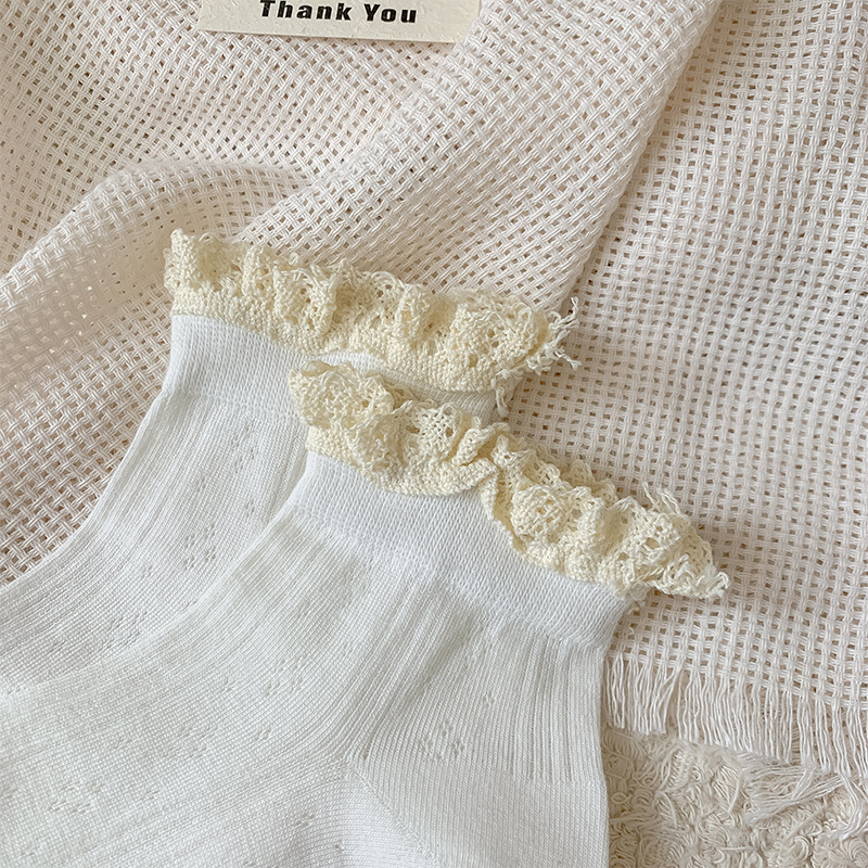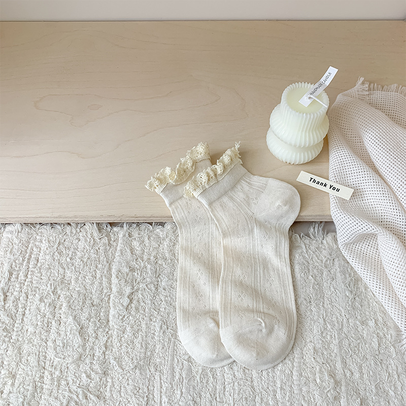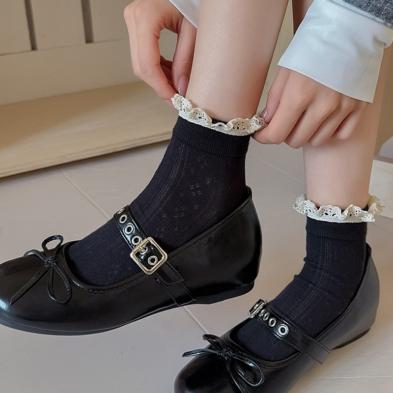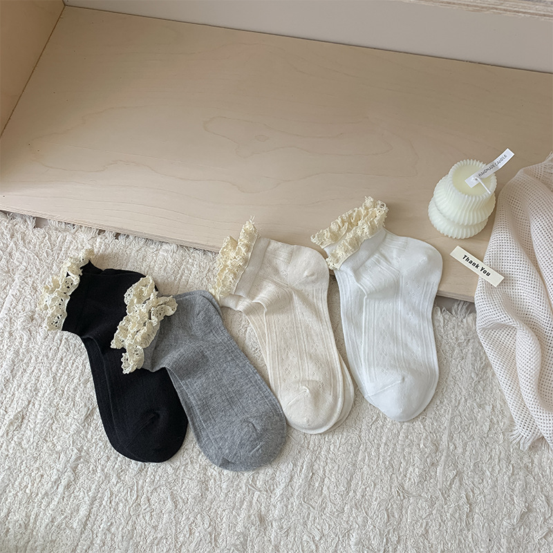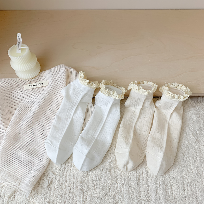 레이스 레이스 레이스 짧은 양말 여성의 봄과 여름 얇은 할로우 메쉬 통기성 땀 흡수 단색 일본 스타일 메리 제인 양말