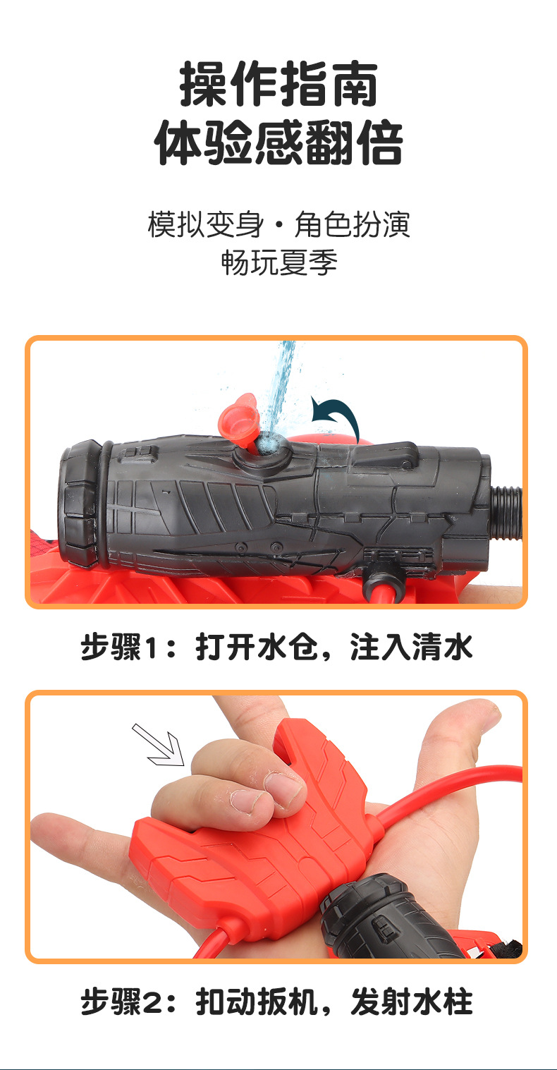 [옌쑤언] 기사도 거미 손목 발사기 프레스 물총 터져 어린이 웨어러블 팔 물 장난감스토어 가기