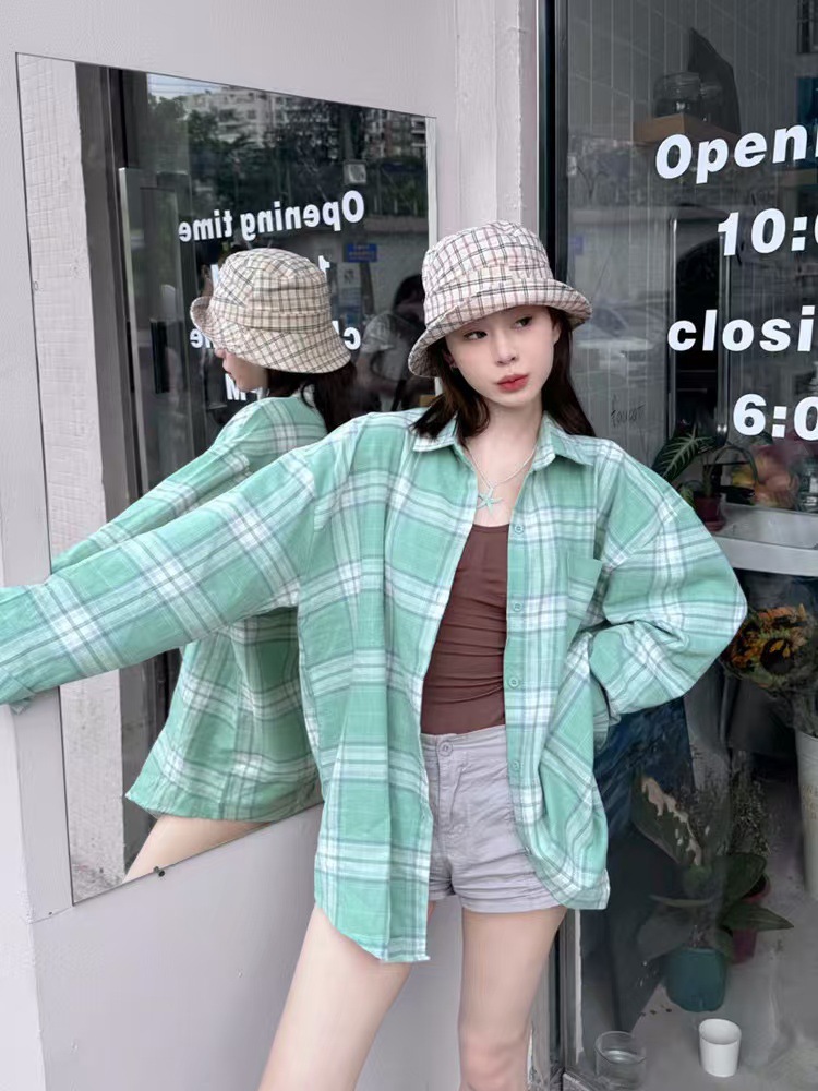 格子衬衫女款爆款2024新款正品